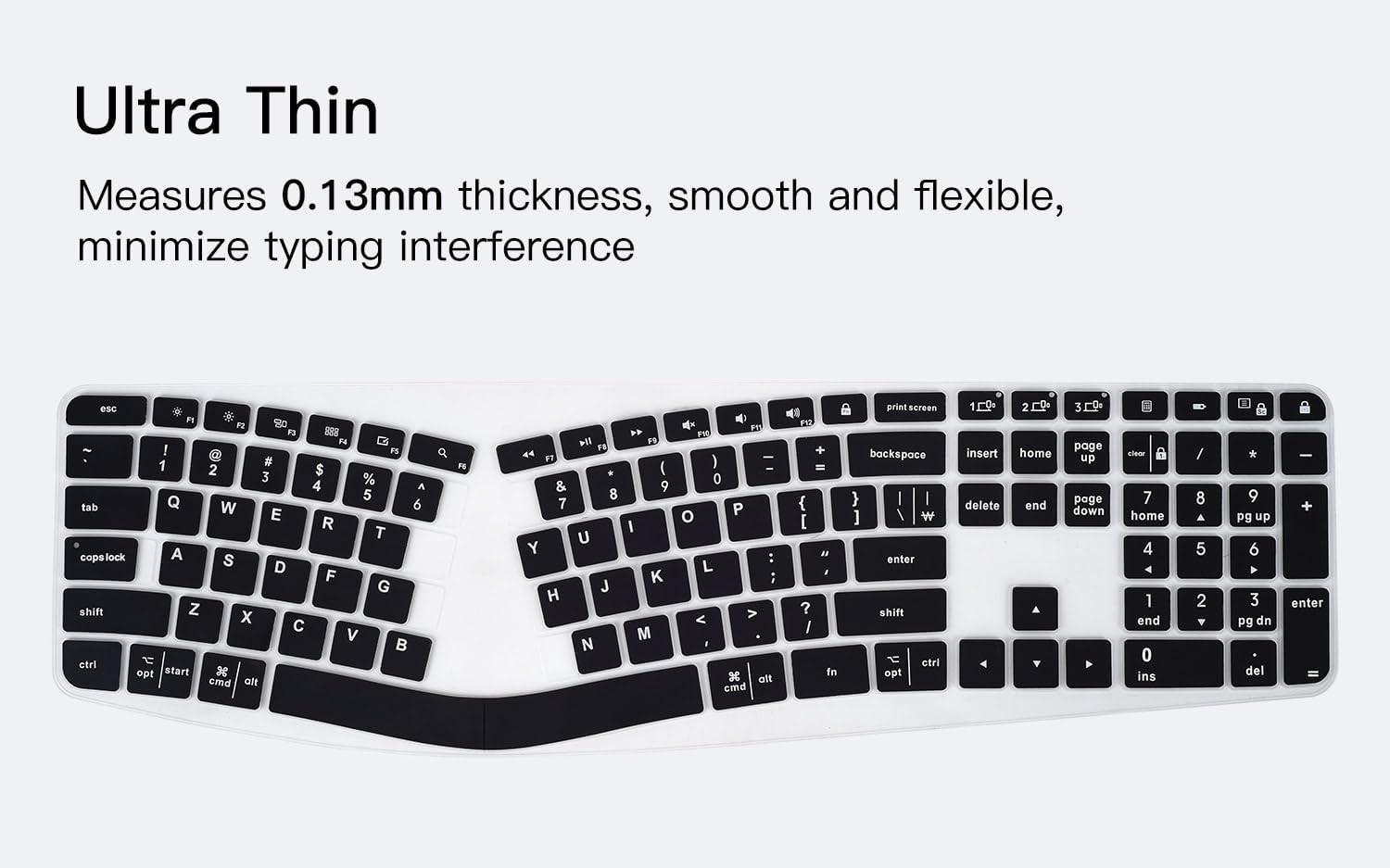 Ultra thin 0.13mm thickness to minimize typing interference, flexible easy to apply and remove for cleaning or disinfecting, also allow to fold it into your backpack.