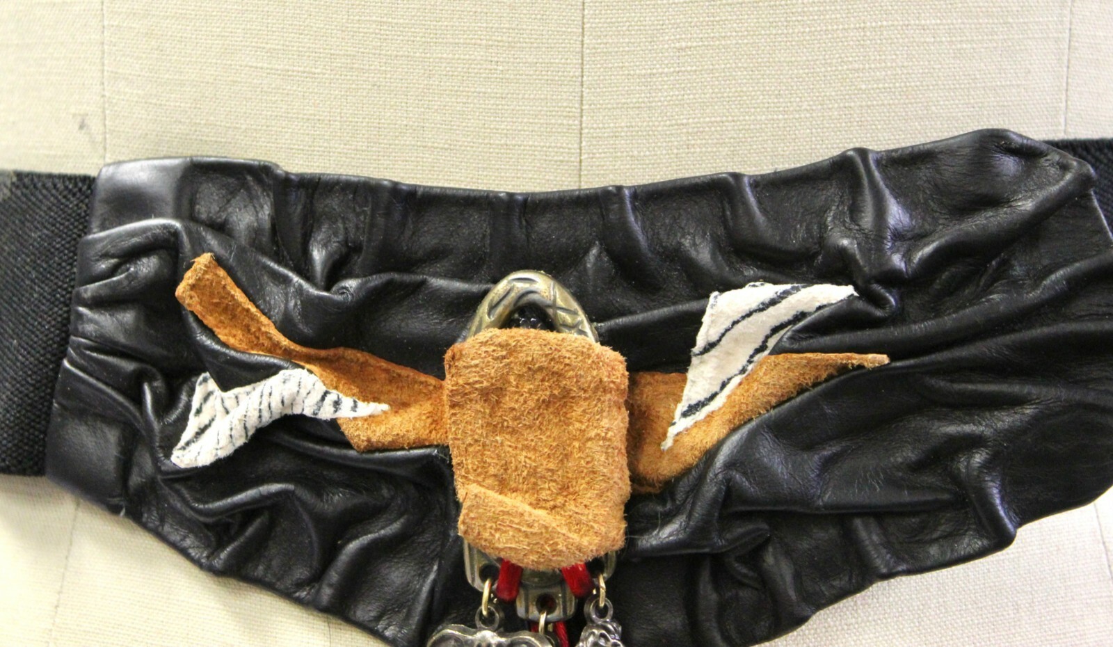Vintage Black Stretch Belt Animal Kingdom Safari Buckle Adjustable 80s Elephant, Lion, Rhino, on the shaped leather buckle, might be one of a kind artisan.
