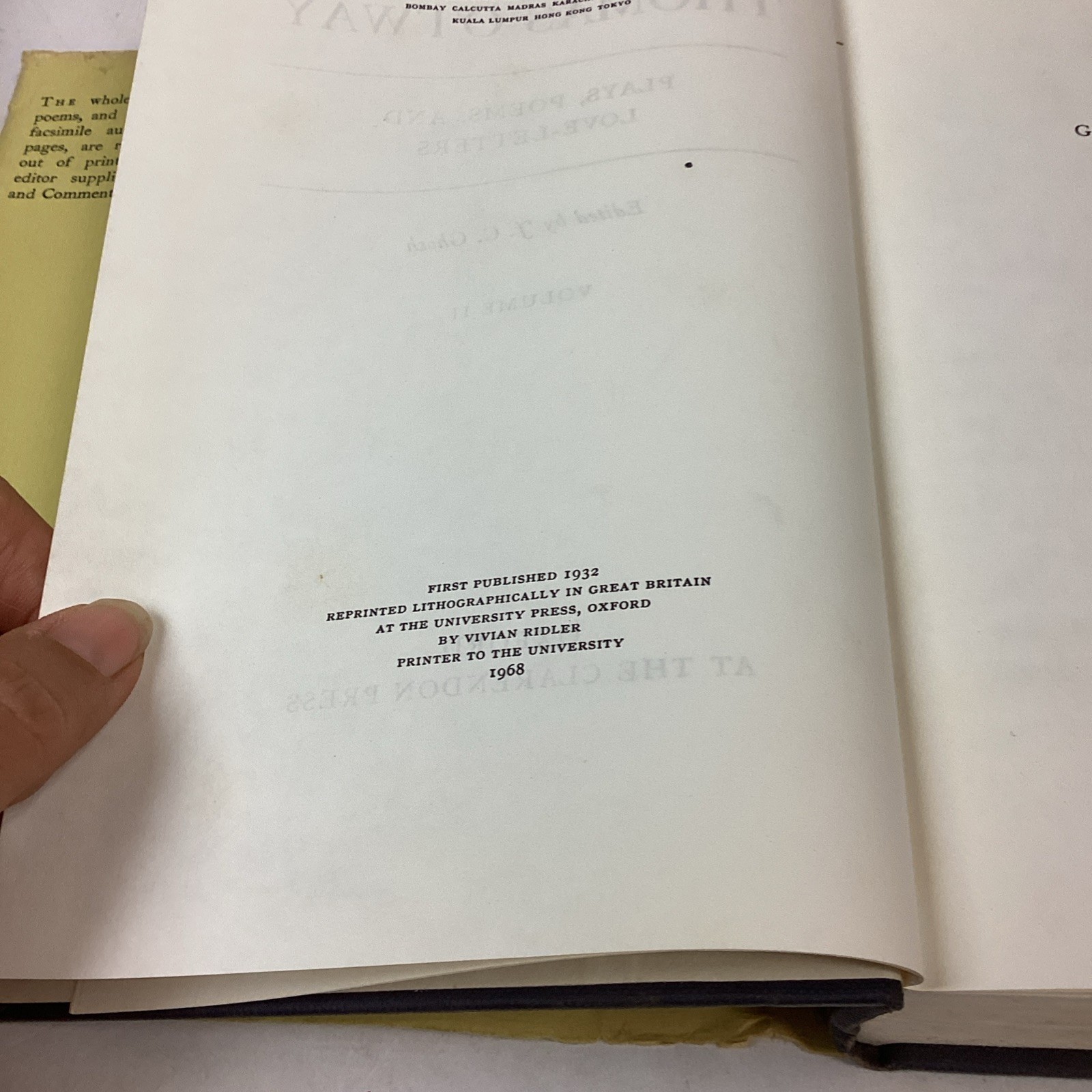 works Of Thomas Atway. Hardcover volume 2. From 1968. Interior pages look good. Dust jacket is ripped in a couple places. 542 pages.