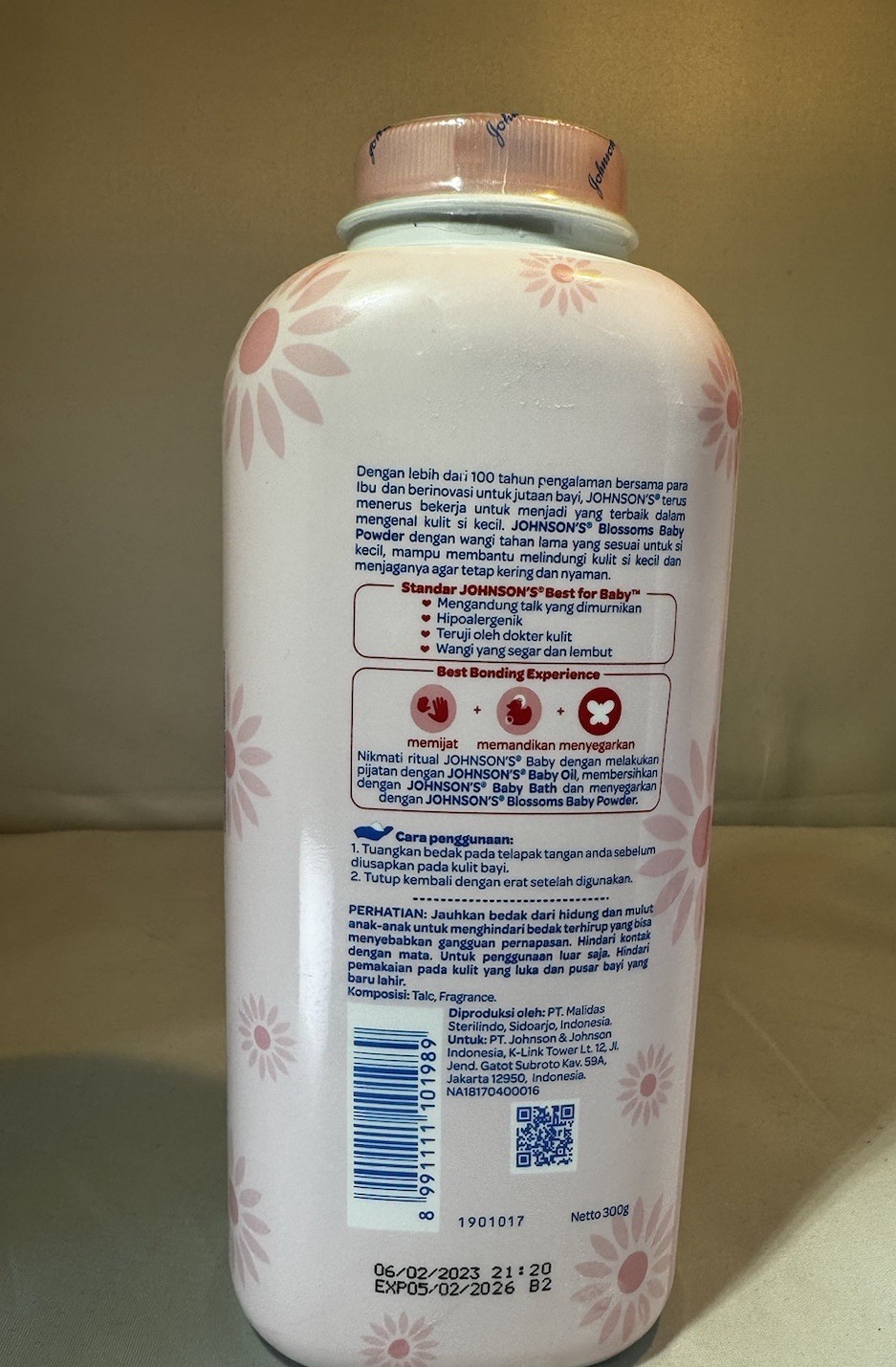 Johnson's Baby Powder Blossom TALC is a 300g container of baby powder with a delightful floral scent.