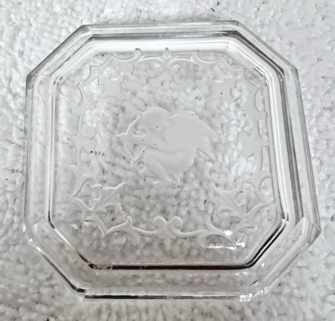 Vintage Intaglio Cherub Cupid Shooting Arrow Glass Crystal Open Salt Dip 2.5 Sq
