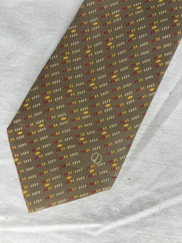 Dunhill London Tie Brown W/Red & Yellow Ovals Pure Silk Italian Made