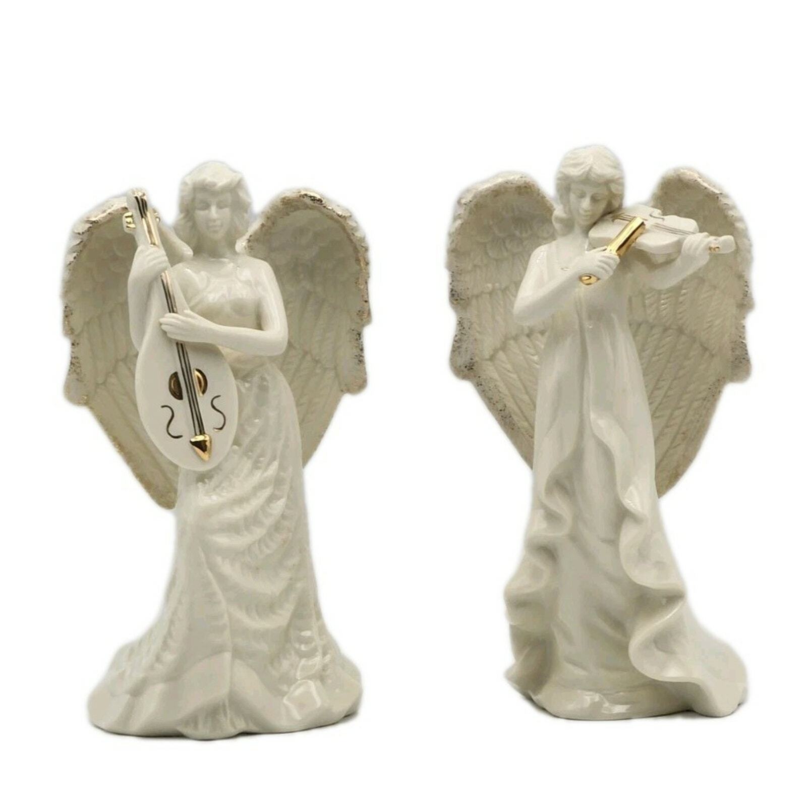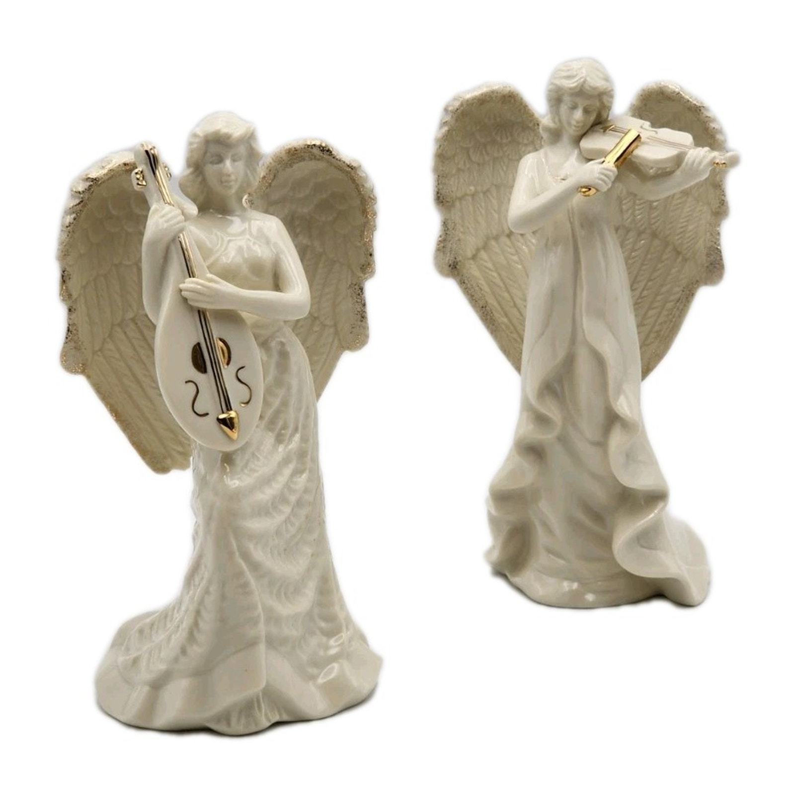 Lenox Angel Figurines Violin & Cello Ivory China with Gold Accents Porcelain