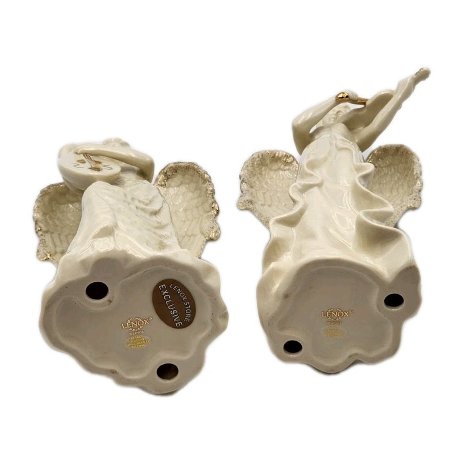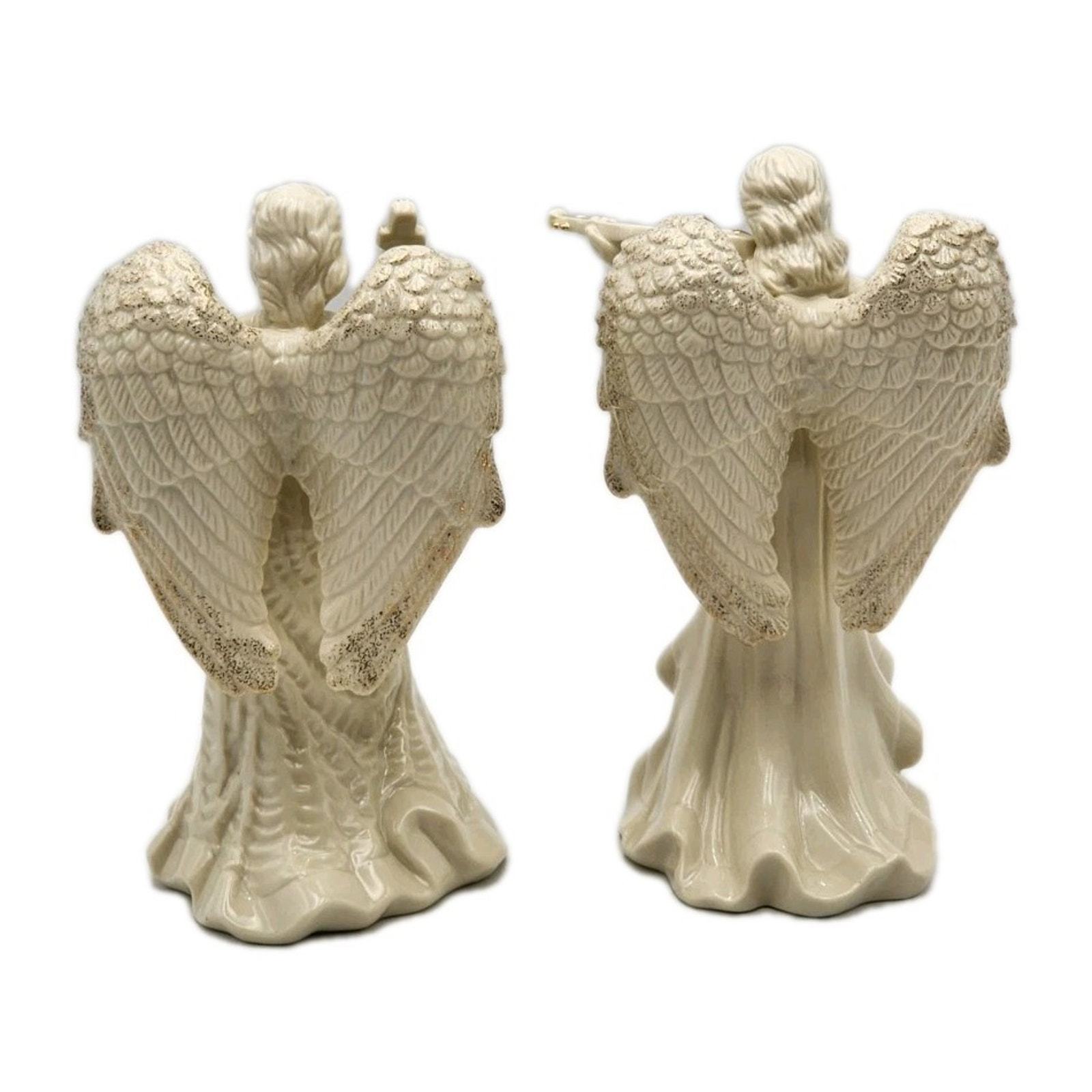 This beautiful Lenox set features two elegant angel figurines, one playing the violin and the other playing the cello. Crafted in Lenox?s signature fine ivory china with 24K gold accents, these angels radiate grace and timeless beauty. Both figurines showcase detailed sculpting, flowing robes, and intricately designed wings, making them a perfect collectible or gift.