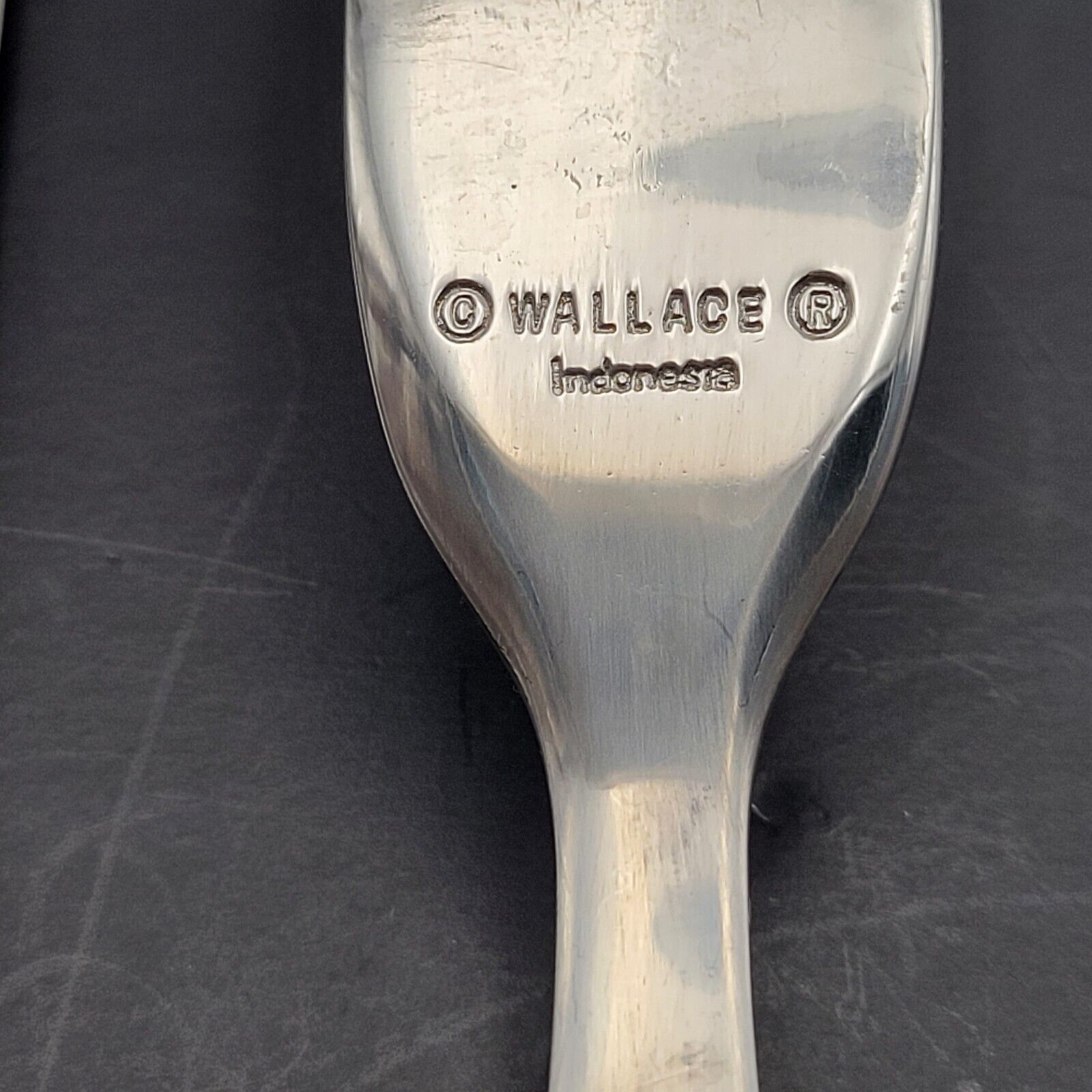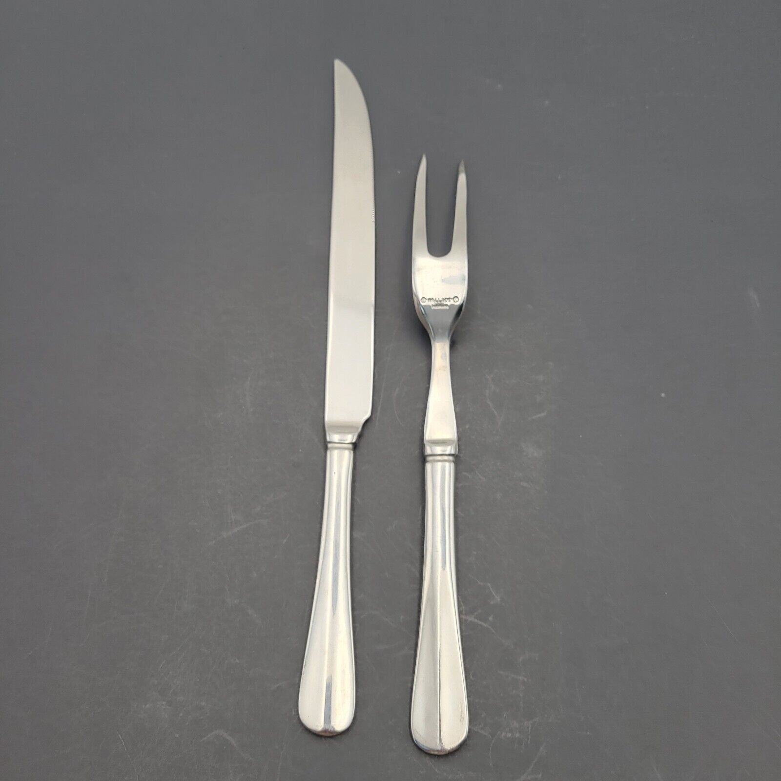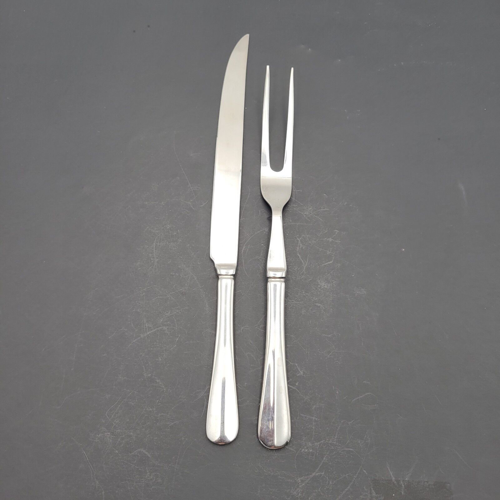 This Wallace Silversmiths carving set is made of high-quality 18/10 stainless steel and includes a knife and fork. It's perfect for anyone who wants to add a touch of elegance to their dining table. The set is in great condition and has been well-maintained.