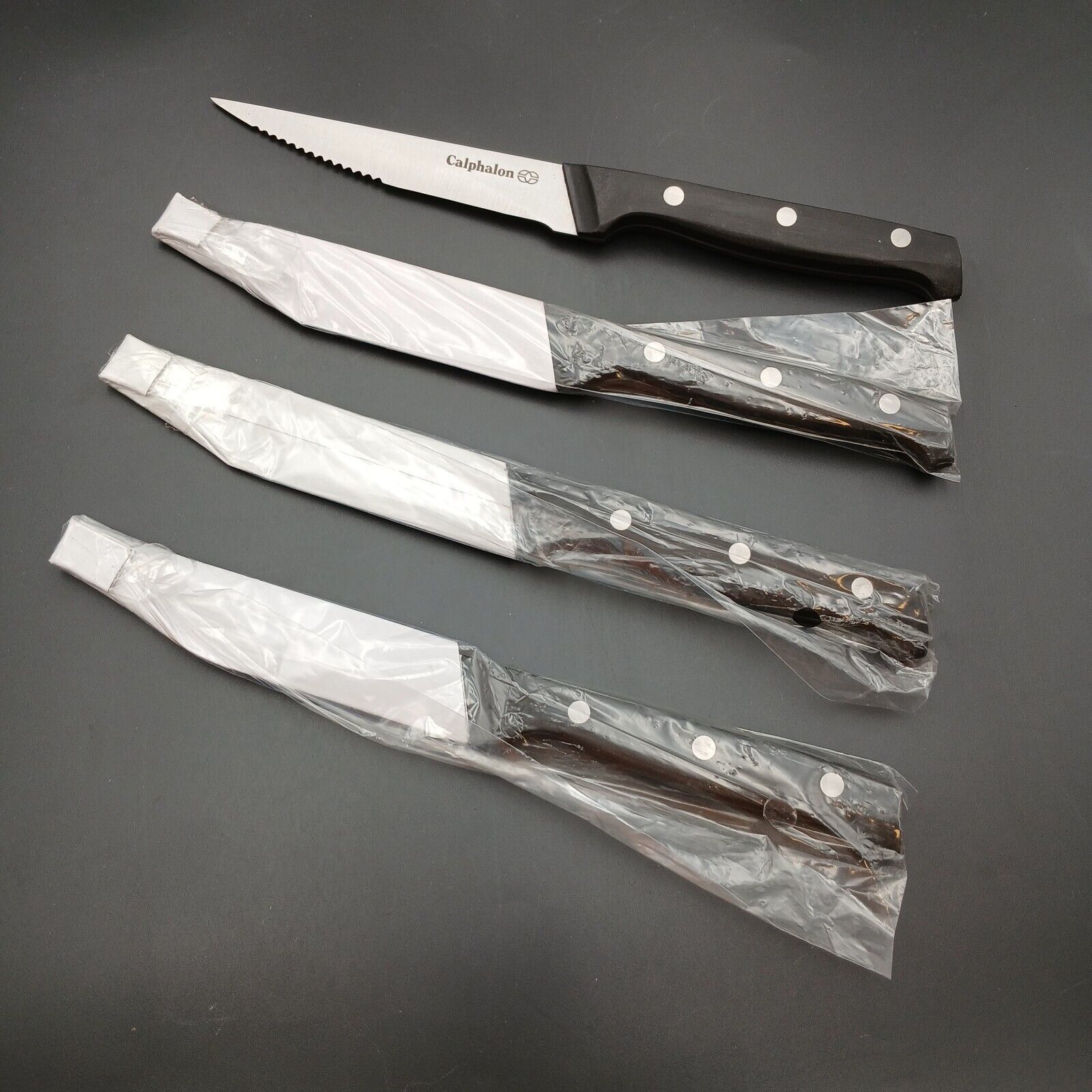 Set of 4 Calphalon CLASSIC 4.5" Serrated Stainless STEAK Knife w/ 3-Rivet Handle