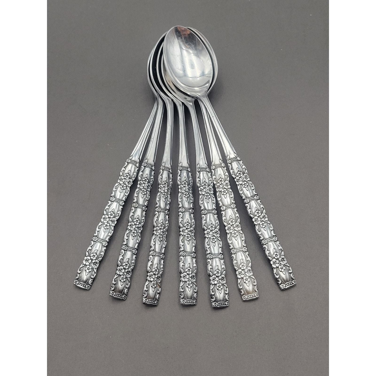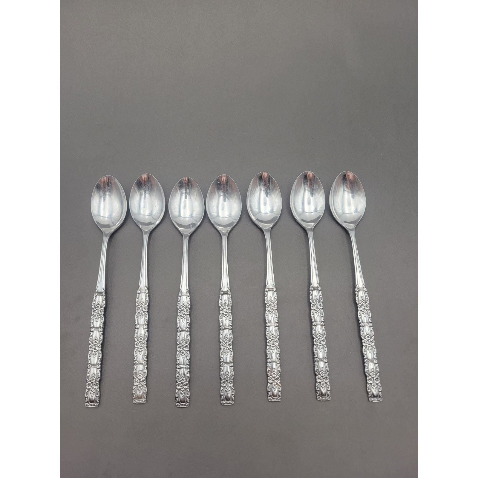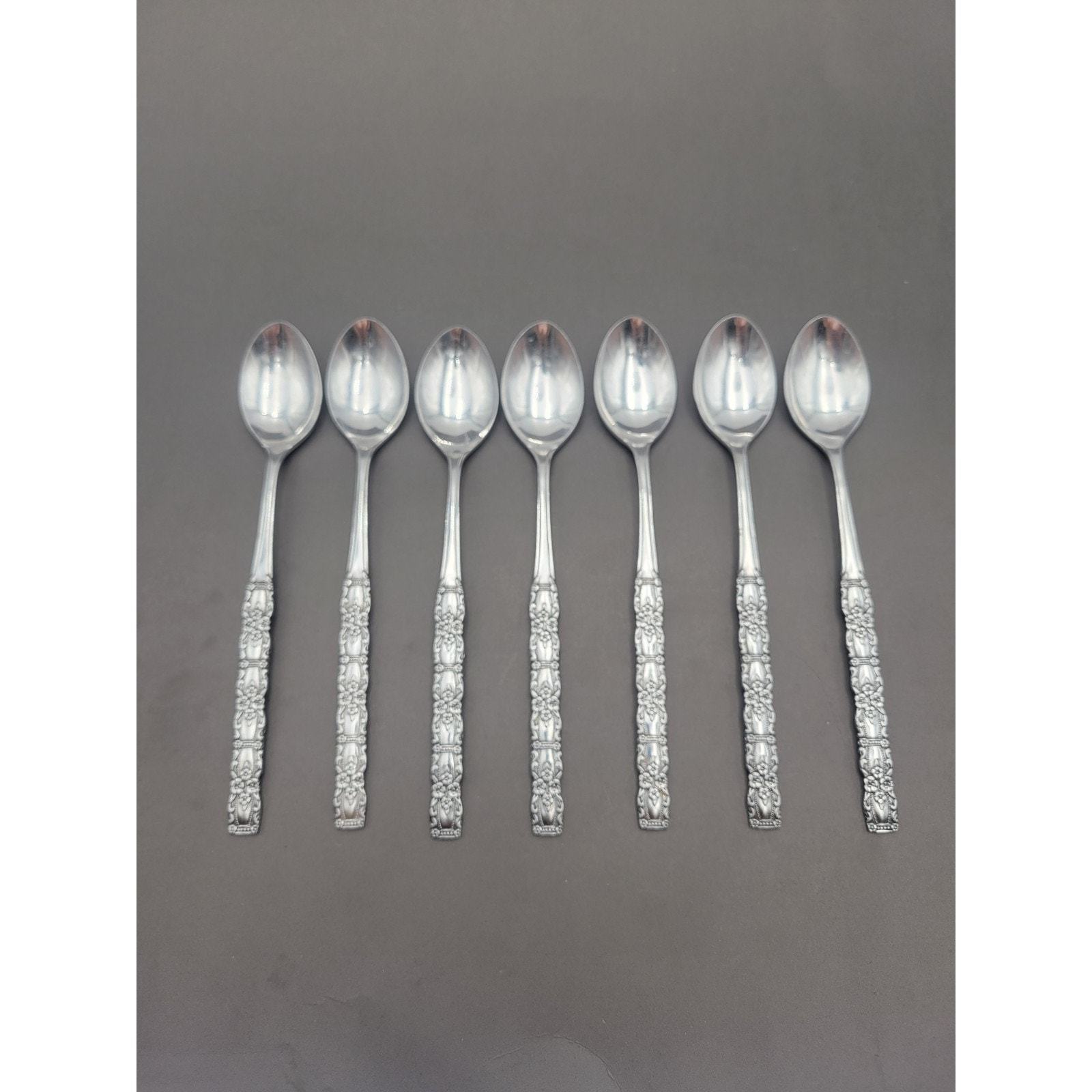 Set 7 Oneida Northland Stainless Floral Houston Iced Teaspoon Japan Discontinue