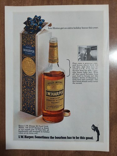 I W Harper 1970 Vintage Print Ad Straight Bourbon Scotch Whiskey Gift Box Bonus