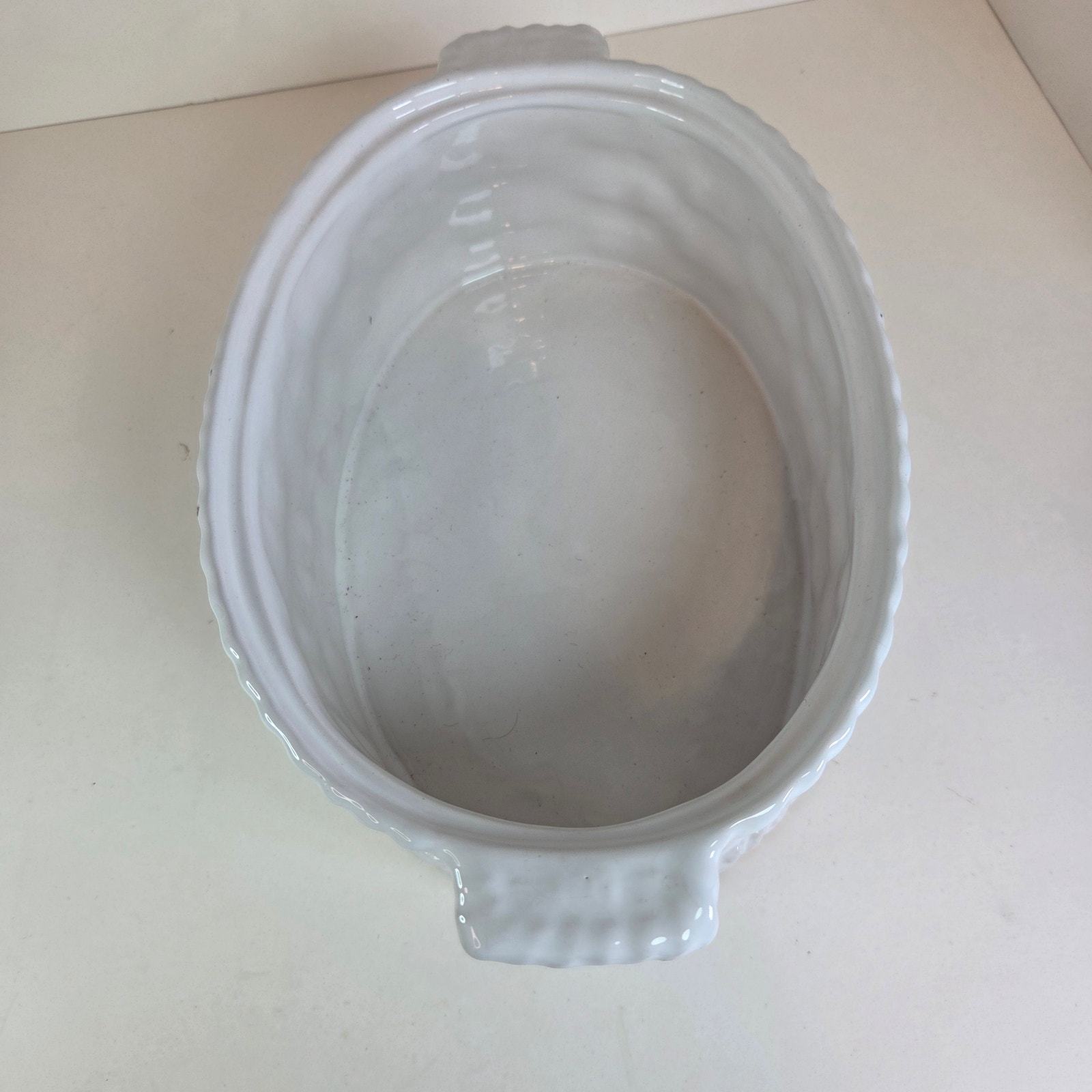Vintage Portugal Mallard Duck Tureen Covered Ceramic Dish Basket Weave 11"