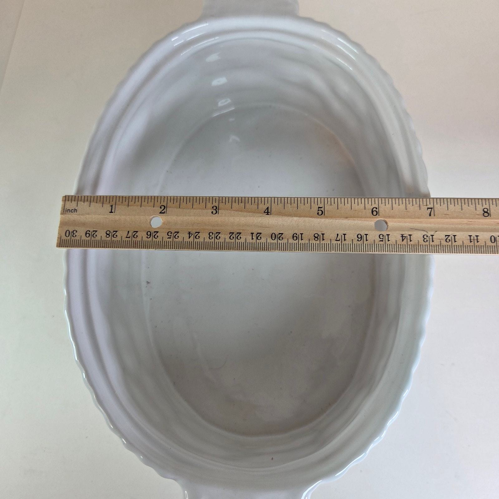 Dimensions: 11" handle to handle; 9" interior length; 7" wide; 3" deep; approx. 8.5" tall with lid