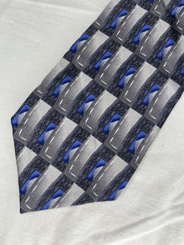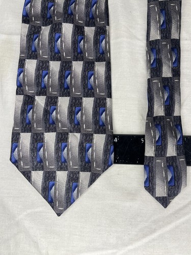 Courage Neckwear Tie Blue & Gray Rectangles 100% Silk Korean Made