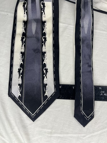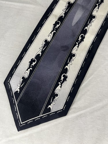 J Blades & Co Tie Blue Black & White Sea Waves Pattern 100% Silk