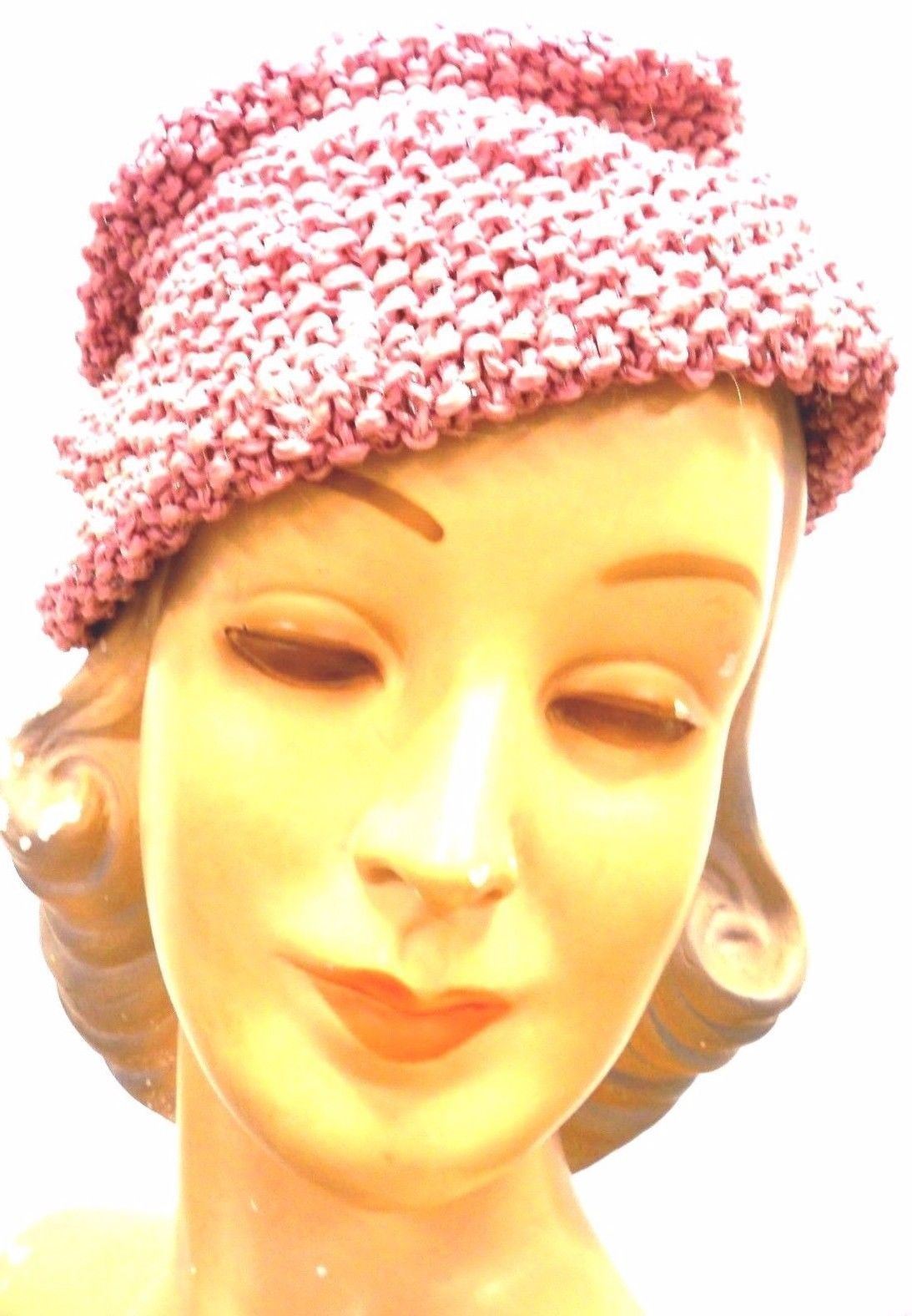 VTG Retro Knit Hat Dusty Rose Pink Metallic Hand-Knit 1940S Womens Guernsey PIE