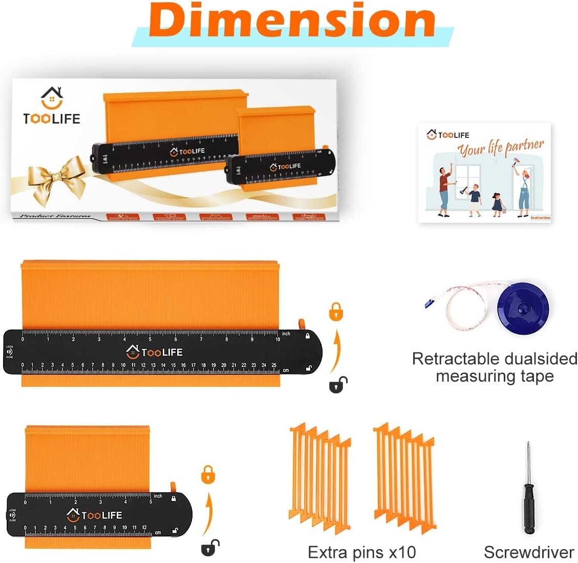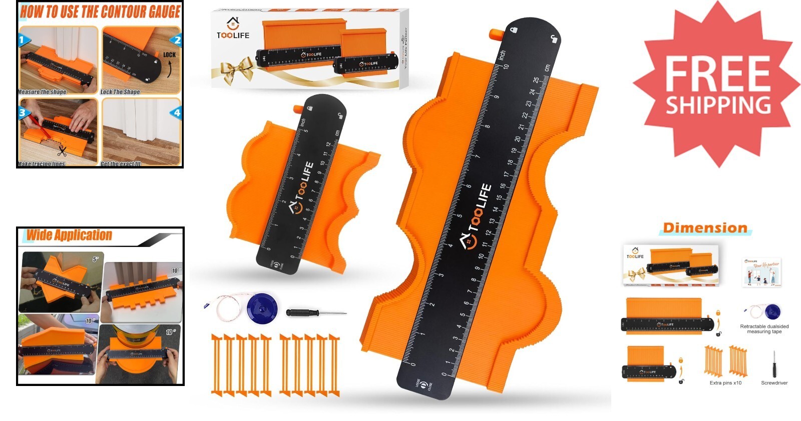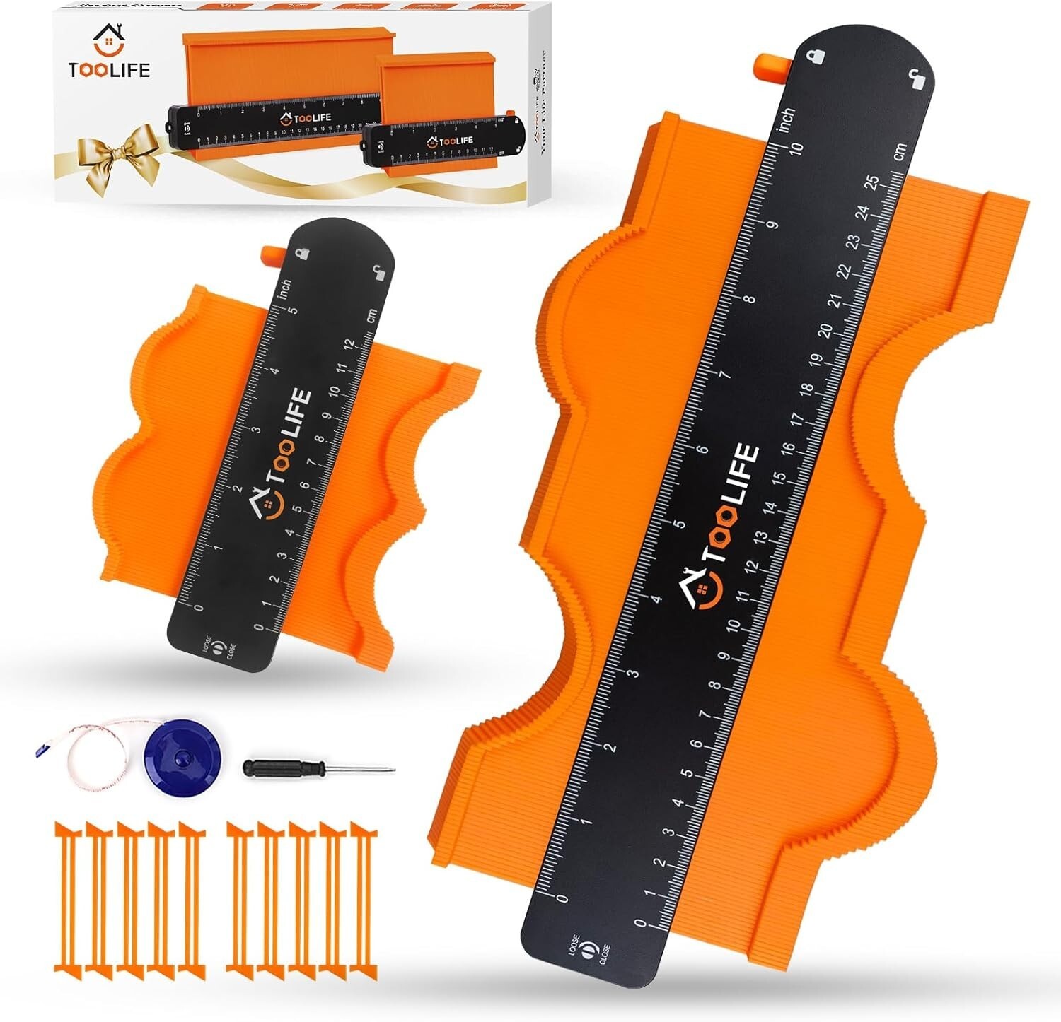 The TOOLIFE Contour Gauge with Lock is crafted from upgraded, durable ABS plastic, ensuring robust performance for precise measurements every time. Featuring clear graduated markings in inches and centimeters, a pre-adjusted design with adjustable tension via the screw, and a secure lock feature, it simplifies your tasks?just one measure, one cut, perfect fit. Ideal for woodworking, home improvement, auto body work, and crafts, it?s a versatile tool for professionals and DIY enthusiasts alike. Packaged with a gift-ready design including a printed bow, detailed instructions, and replacement pins, it makes a thoughtful gift for dads, husbands, friends, or anyone passionate about DIY projects. To ensure fast and reliable delivery, we work with multiple fulfillment partners and suppliers. Depending on availability and location, your order may ship from different warehouses or arrive in packaging that varies from item to item. Tracking details are typically provided shortly after shipment, and customer satisfaction remains our top priority. Please note that due to carrier policies and regional regulations, certain items may not be eligible for delivery to specific states or territories.