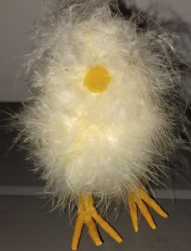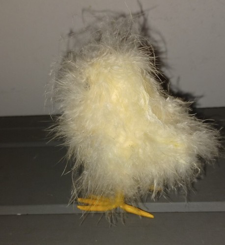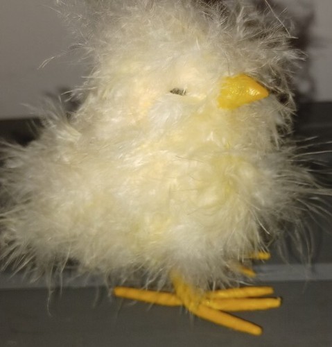 Chick Decor Fuzzy Easter Figure 4" Yellow Feathers Standing Tabletop Styrofoam