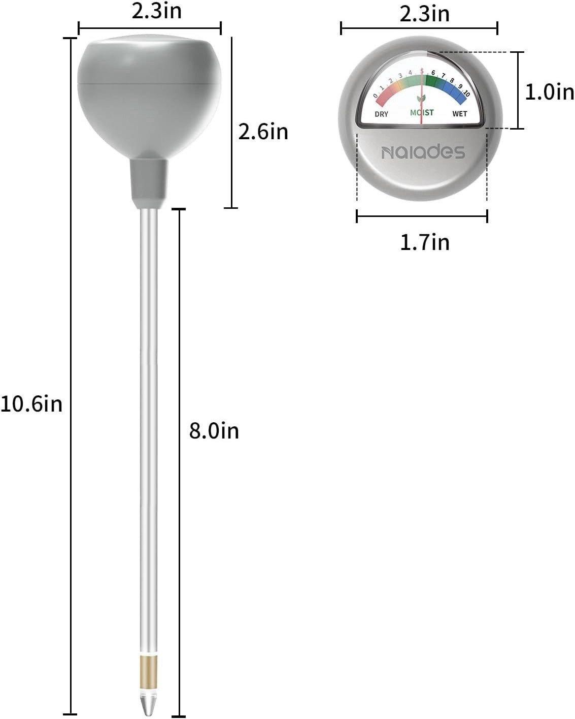 Naiades Soil Moisture Meter Silver Hygrometer Sensor for Indoor Outdoor Plants