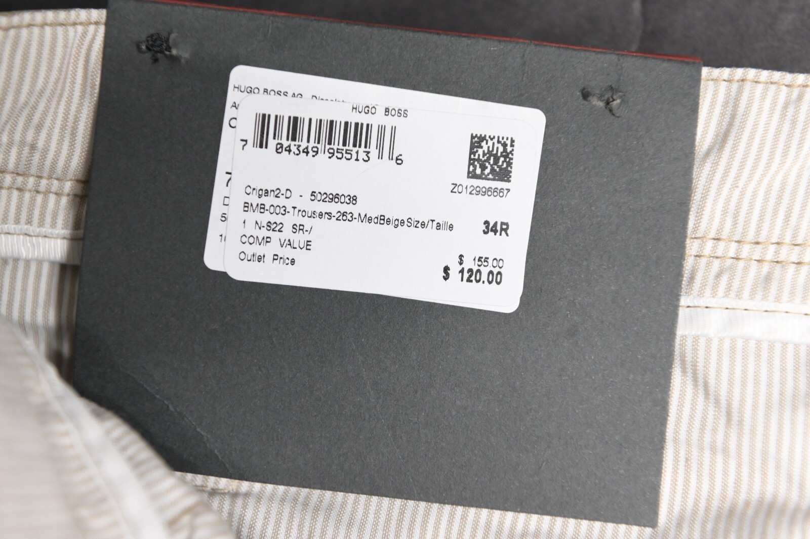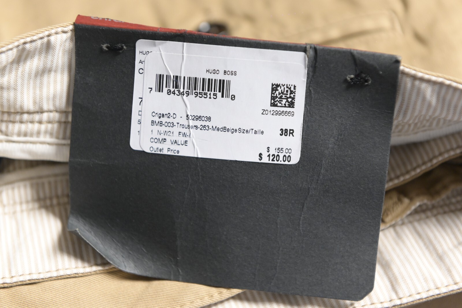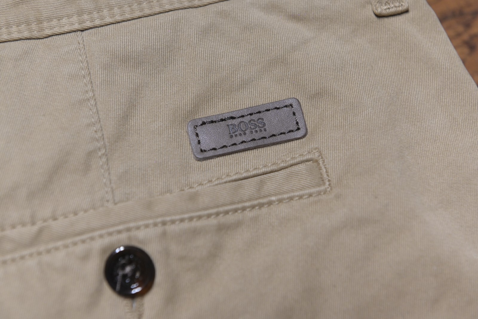 NWT Hugo Boss Mens Crigan1-D Fit Regular Stretch Algodon Med Beige Beige Chino Pantalones