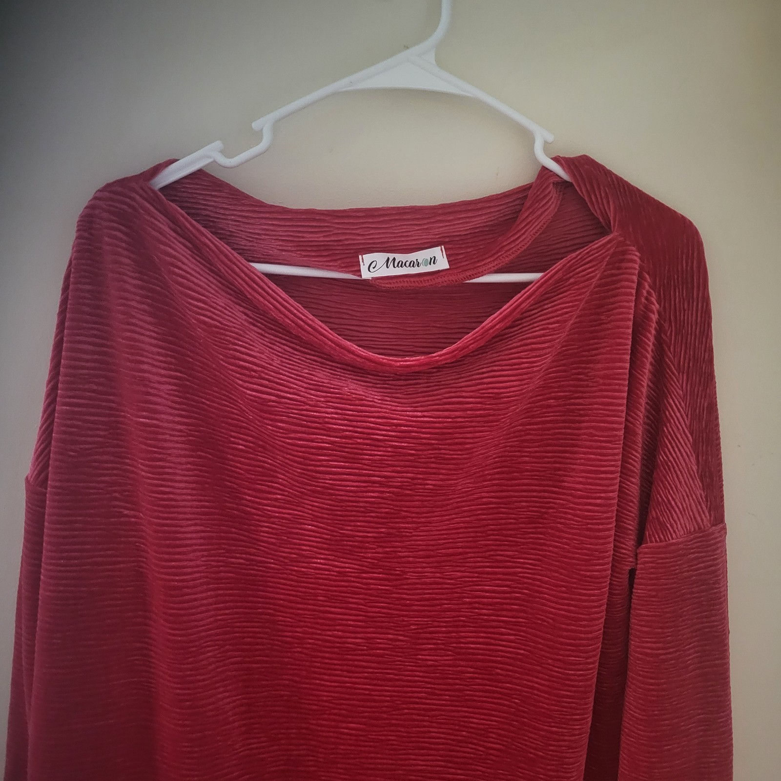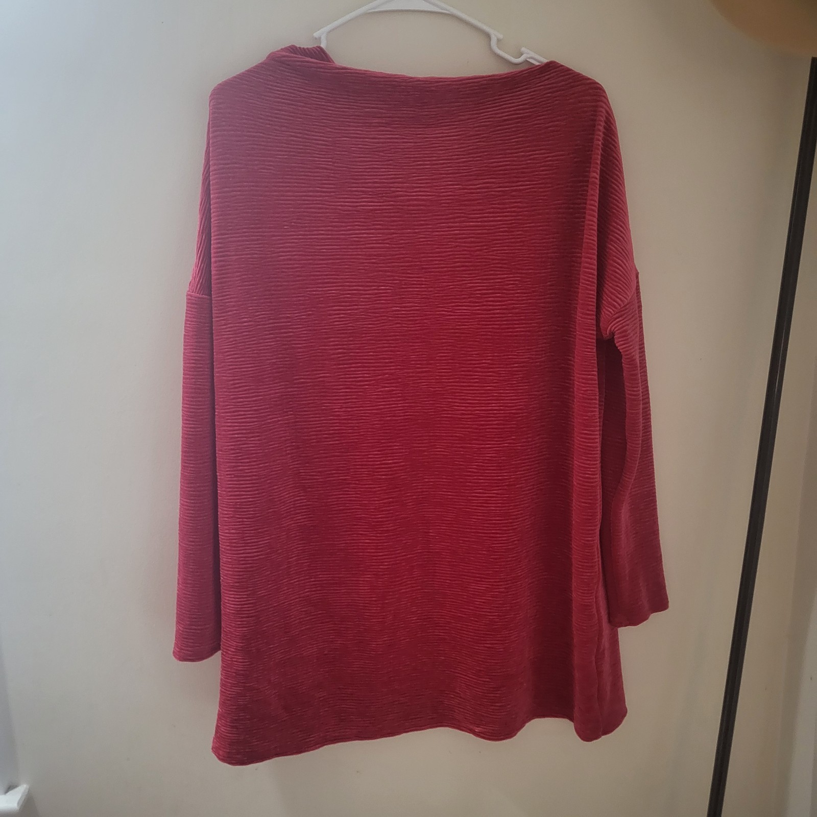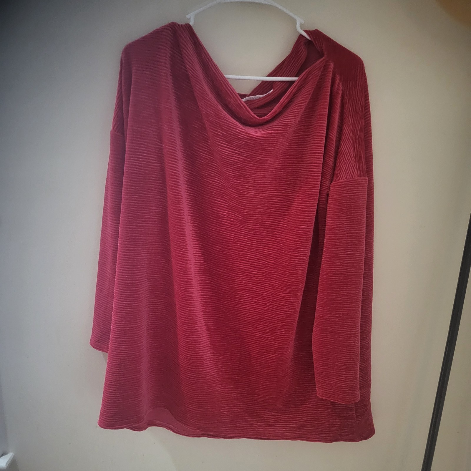 This beautiful pink blouse is still new without tags! Pit to pit measures approx 29". There is no size tag but it seems to be around 1x/2x. The sleeves seem to run thin at approx 5" across. Length from shoulder to bottom is approx 30" long.