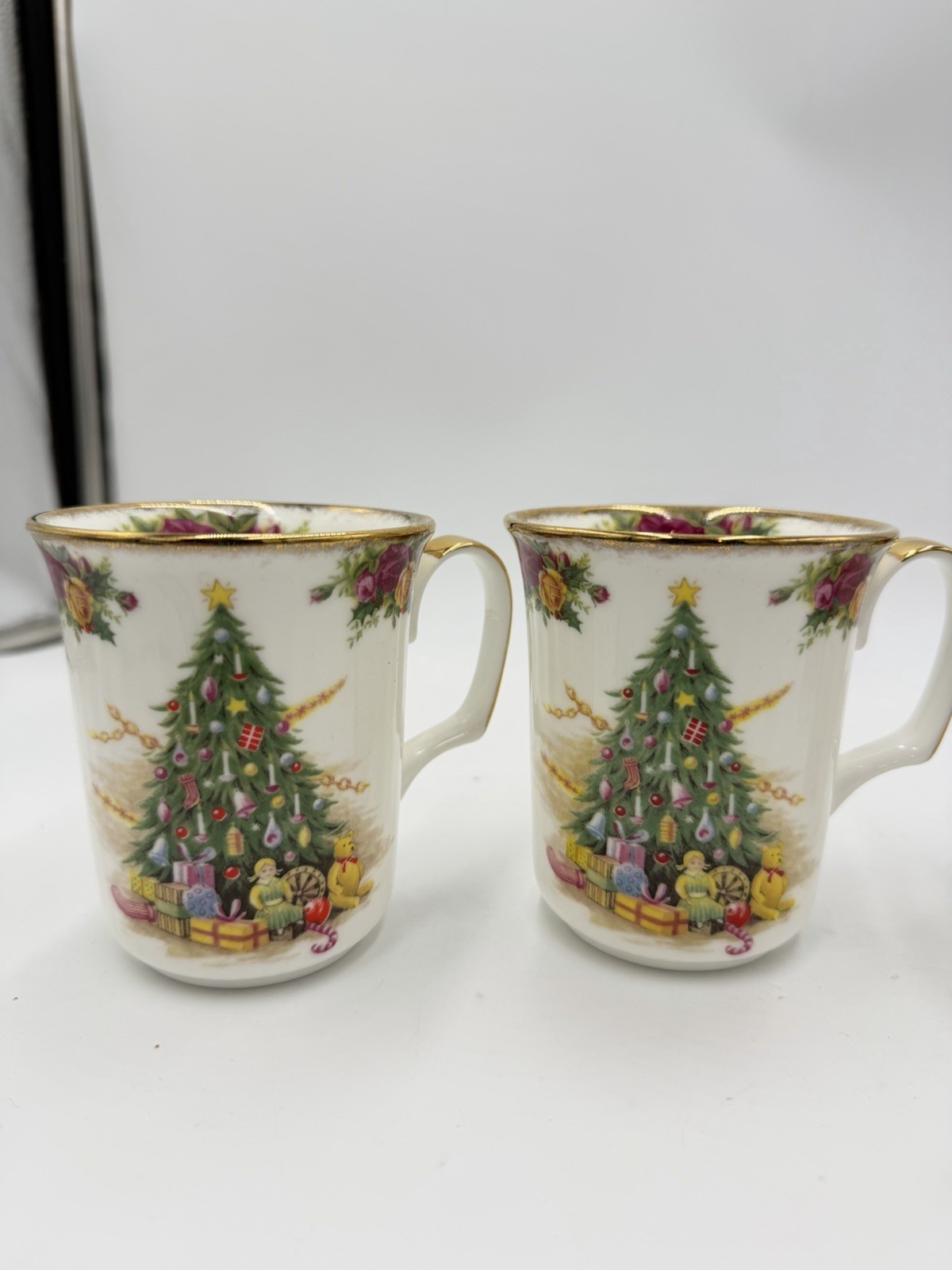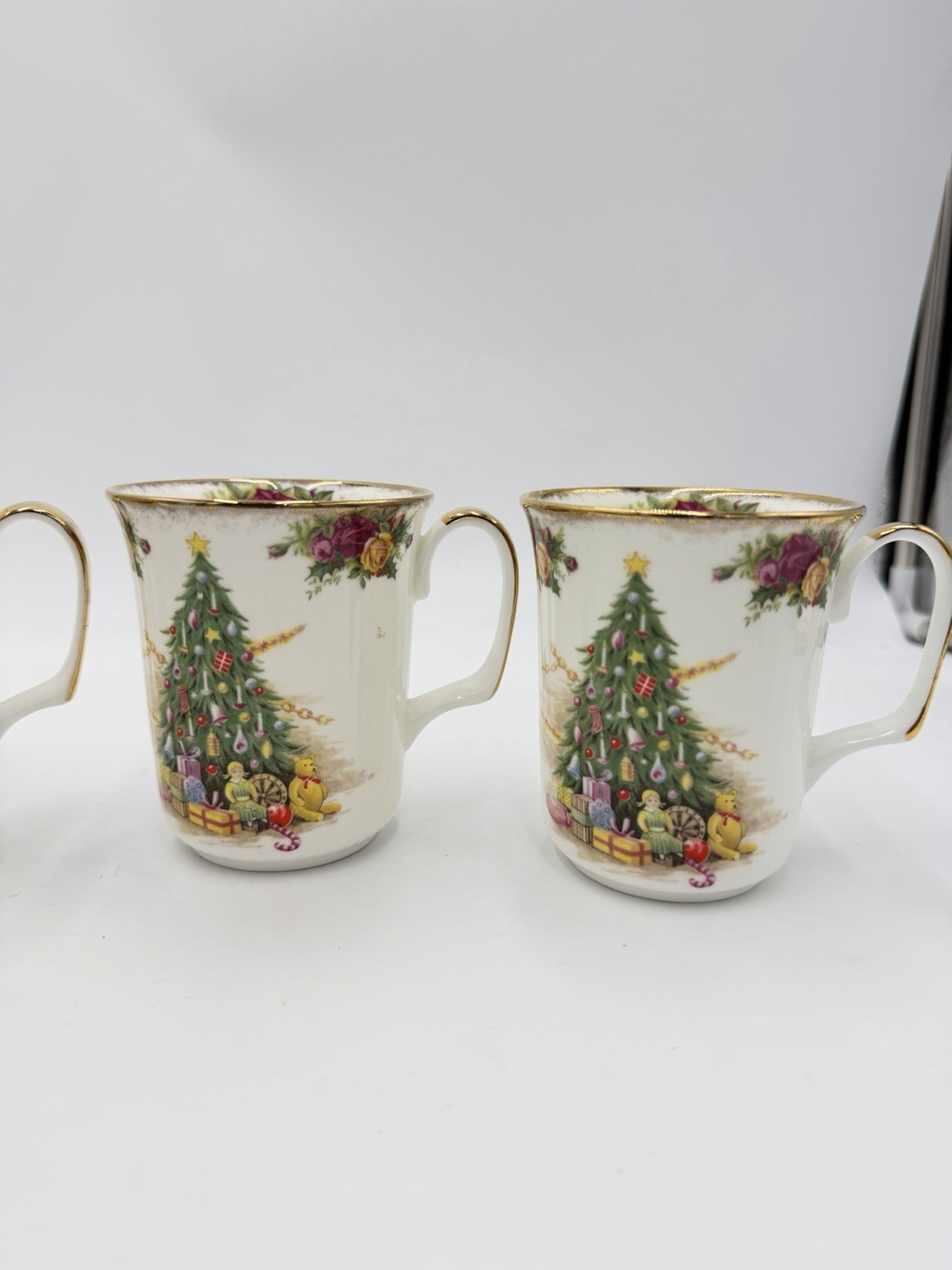 Royal Albert Old Country Roses Christmas Magic Porcelain England Coffee Mugs Set