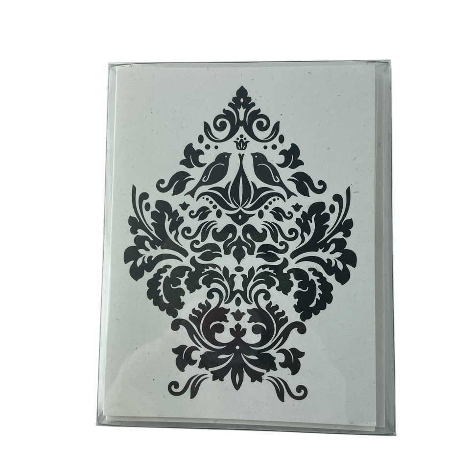 This set of 8 gray and white note cards features a stunning floral pattern and a stylish bird cage design, perfect for sending heartfelt messages on any occasion. Whether it's a thank you, a love note, or just because ? your words will look even more beautiful on these thoughtfully crafted cards.
