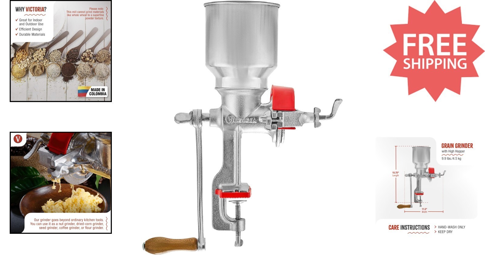 Durable Cast Iron Manual Grain Grinder - Perfect for Kitchen & Coffee Lovers