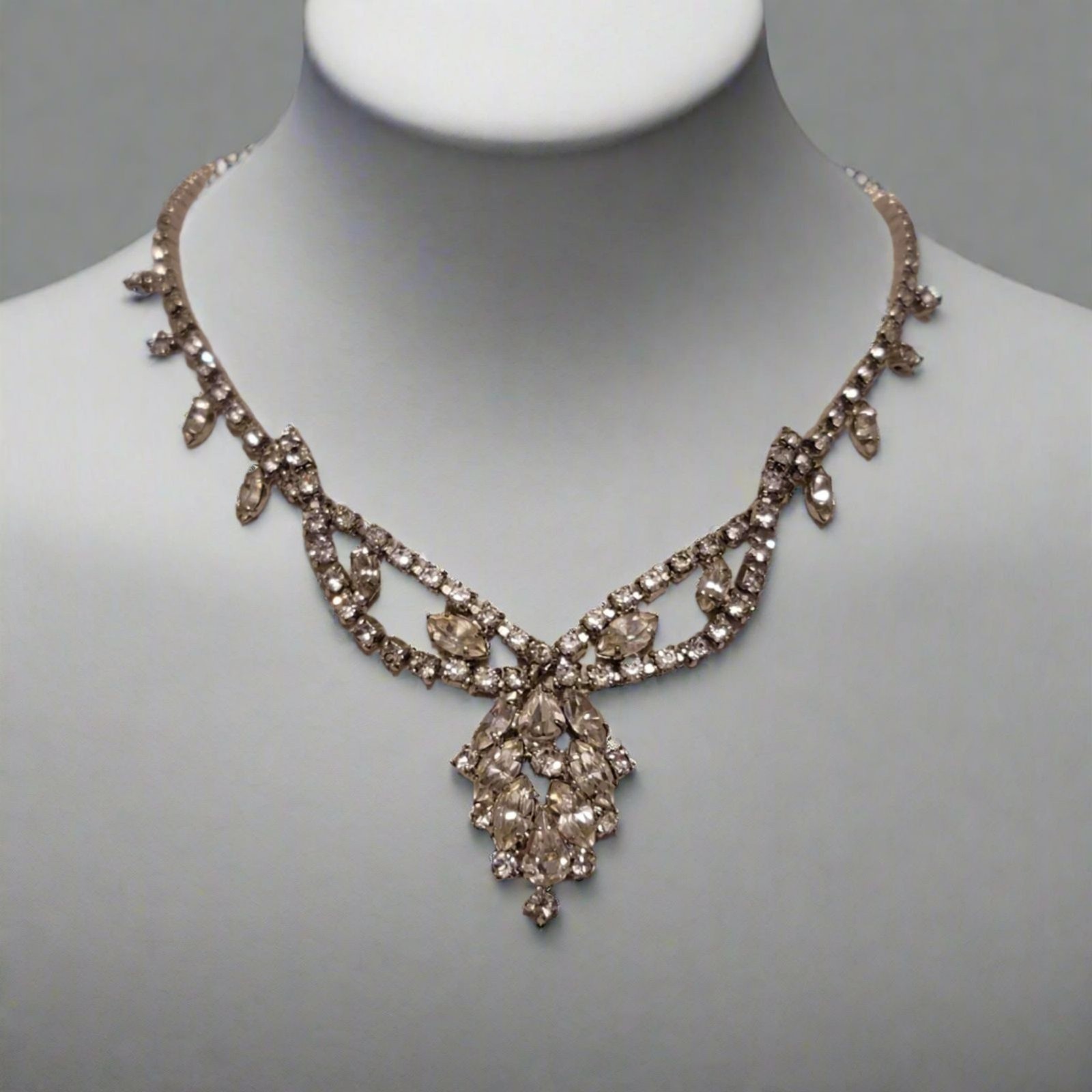 Vintage Weiss Rhinestone Necklace – Elegant Statement Bib Choker