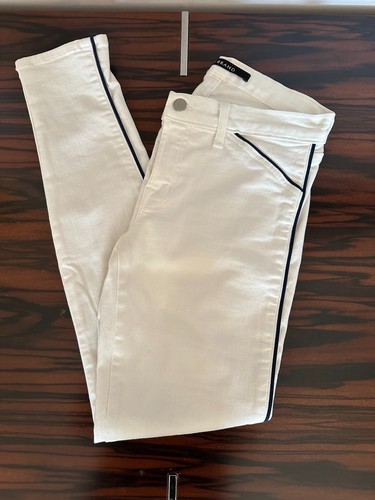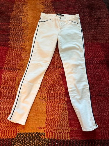 JBRAND "Blanc" White Stretch Skinny Jeans Navy Blue Piping SZ 27 NWOT