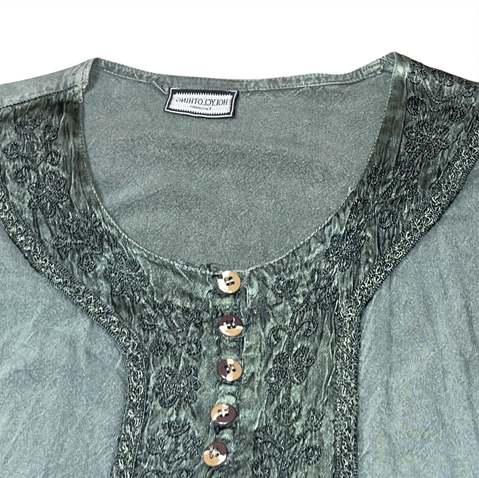 Holy Clothing Tunic Top Shirt Size 4X Green Embroidered Peasant Blouse Romantic