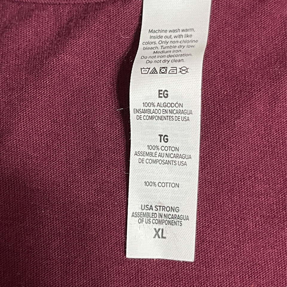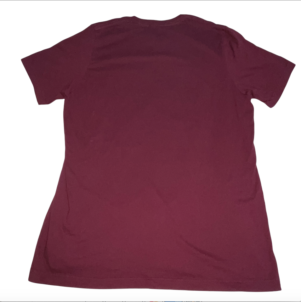 Excellent condition. Maroon red color with gold graphic. Size tag XL but runs closer to a L Large. Measures 23 inches across the chest and 32 inches overall length. Please see all photos. We are a smoke free, pet friendly home. Have a great safe day!