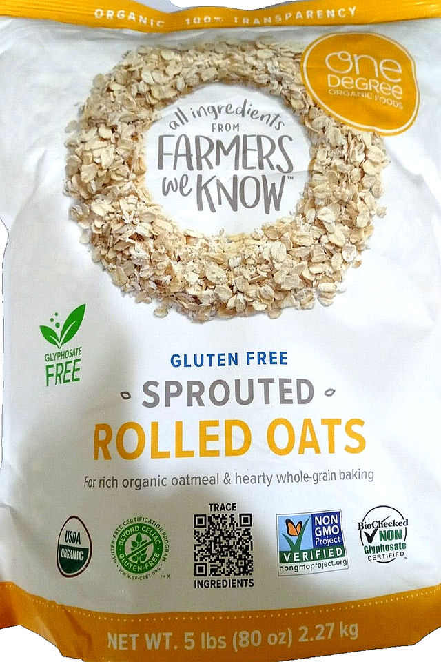 One Degree Organic Gluten Free Sprouted Rolled Oats 5 Lbs (80 Oz) EXP 10/2025