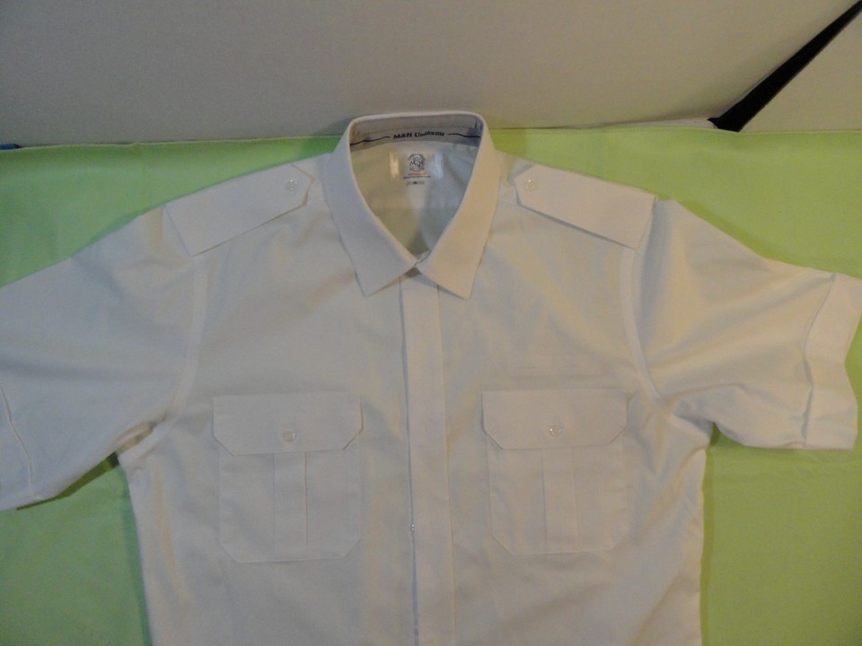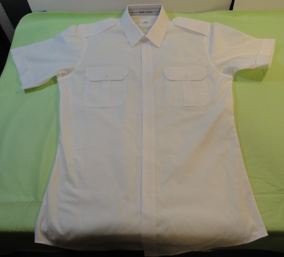 NEW M&H TAPERED FIT SHORT SLEEVE WHITE SHIRT PILOT UNIFORM W/ EPAULETS SIZE 16