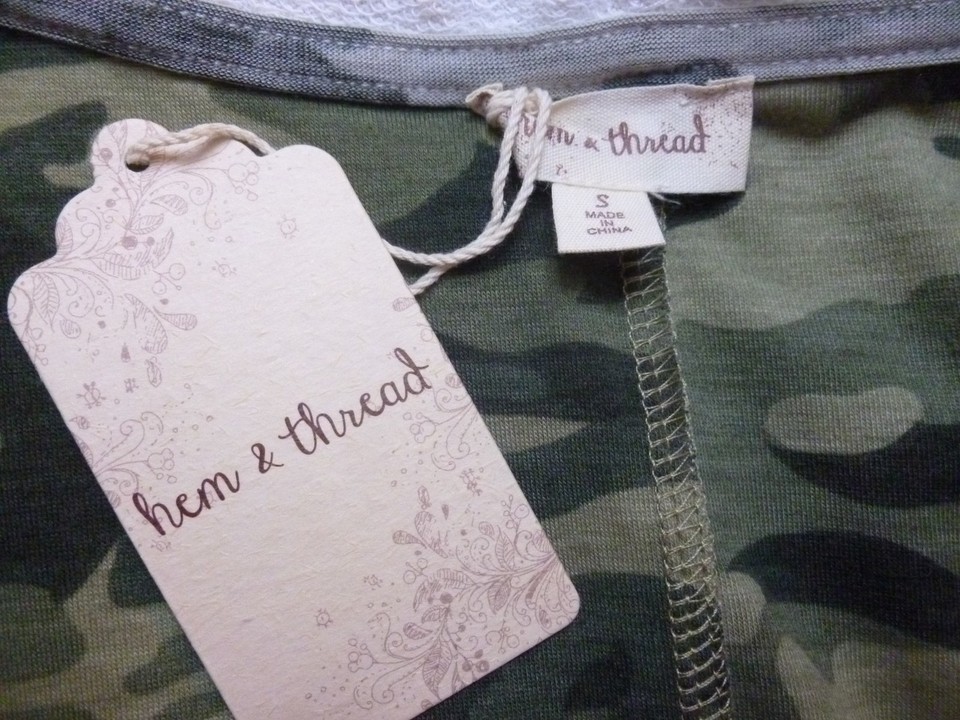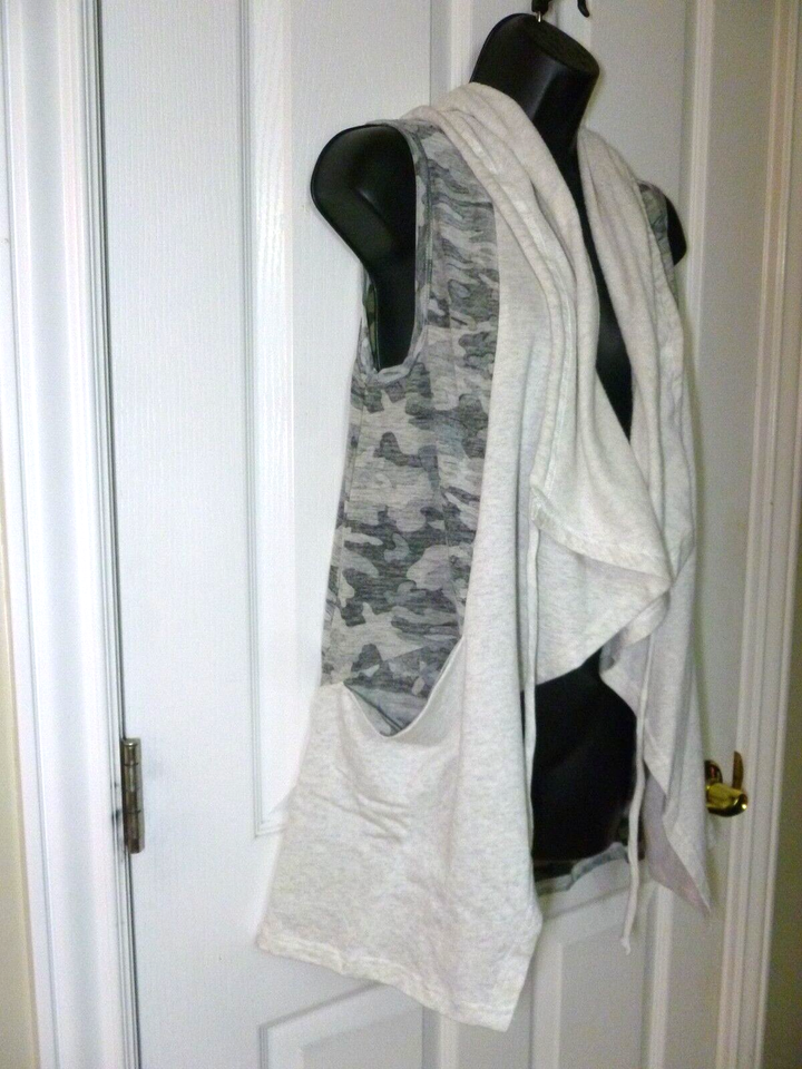 Hem & Thread Vest Womens Gray Camo Knit Pockets Hooded Vest Size Small NEW