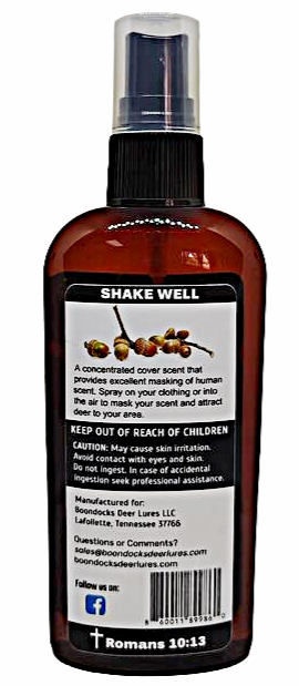 Boondocks Acorn Cover Scent is designed to help hunters mask their human scent. This acorn aroma can be sprayed on boots or misted into the air to mask human scents while hunting. Additionally, it can attract deer, as they are drawn to the scent of acorns.
