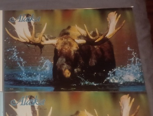 Placemats Set 4 Vintage Colorful ALASKA Laminated Moose Glacier Bay Mountains