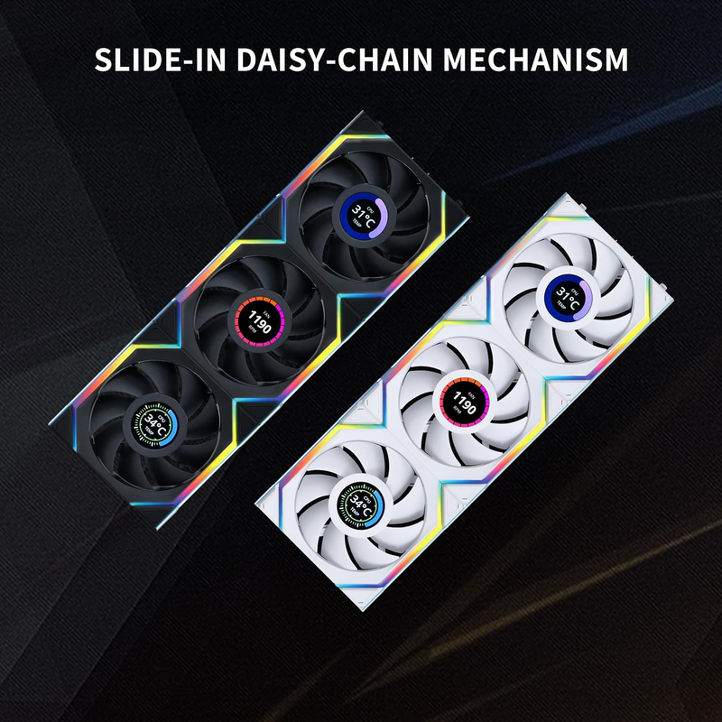 2.4 GHz Wireless Signal for RGB Fan Control: Next-gen RGB connectivity for PC case fan managing the 1.6" LCD and RGB lighting with a wireless controller. Customize your system?s style by uploading your own personalized MP4 / GIF / JPG / PNG.