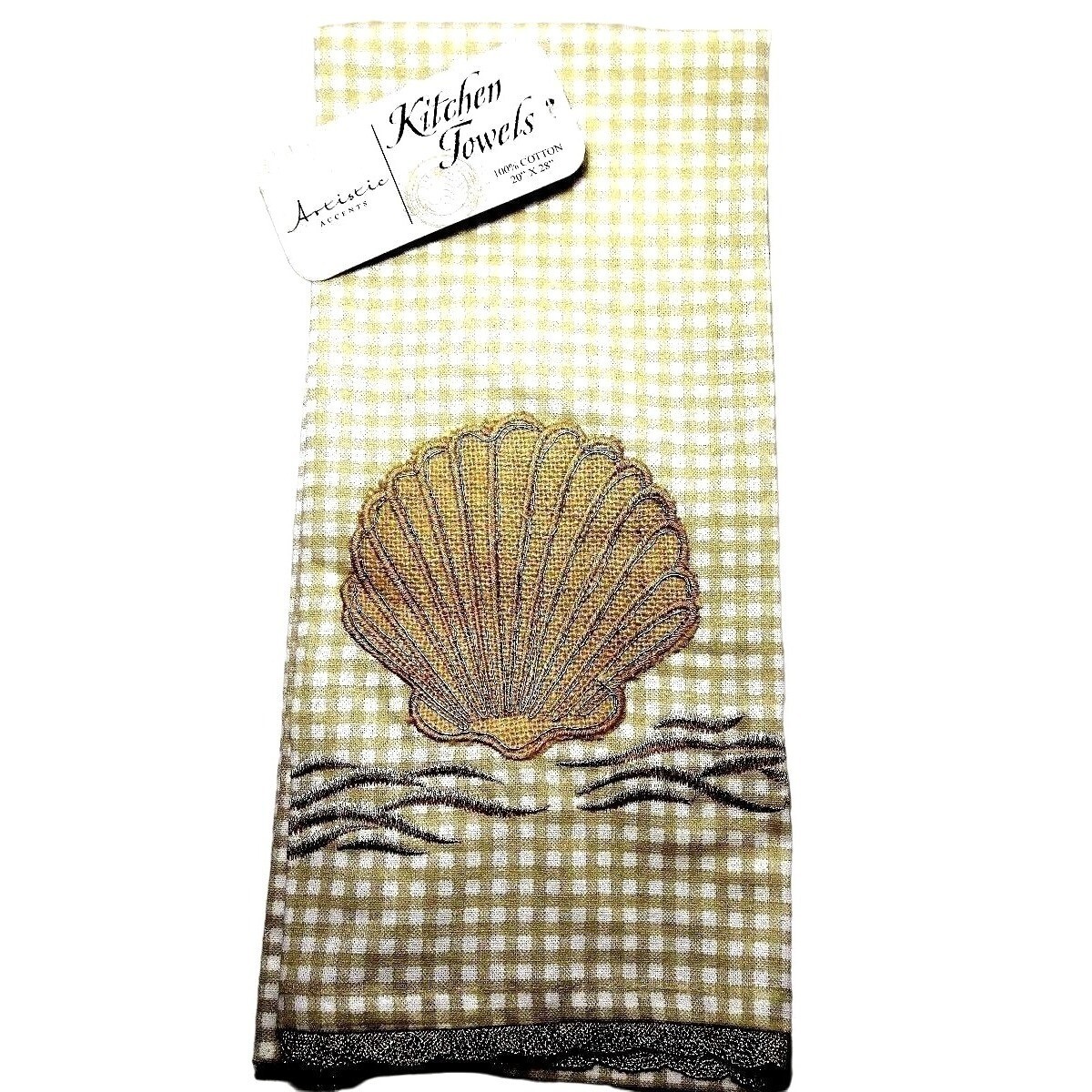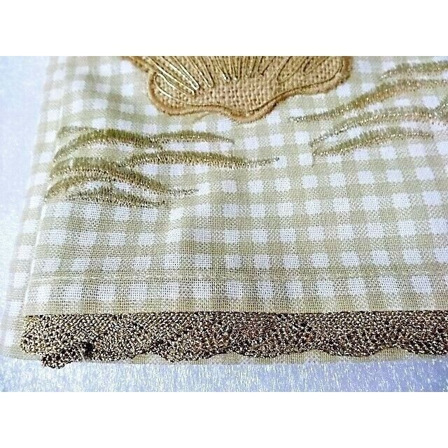 Artistic Accents Embroidered Seashell Kitchen Towel Gold Cream Lace Cotton NEW