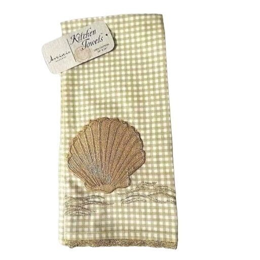 ARTISTIC ACCENTS SEASHELL GOLD LACE KITCHEN TOWEL