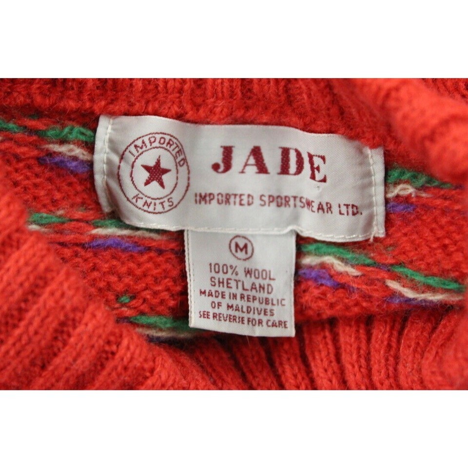 Jade VTG Shetland Wool Sweater Red Intarsia 1940s Vibe Retro Unisex M