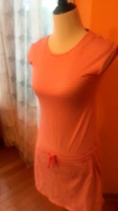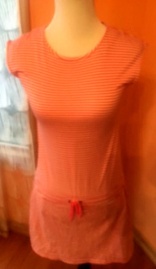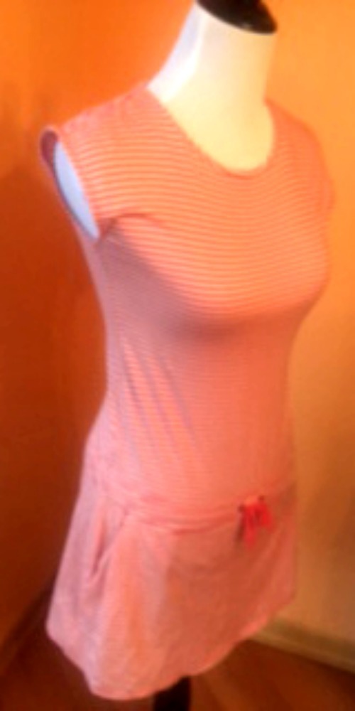 NWOT VINCE Cotton Blend Coral & White Striped Sleeveless Leisure Dress SZ L