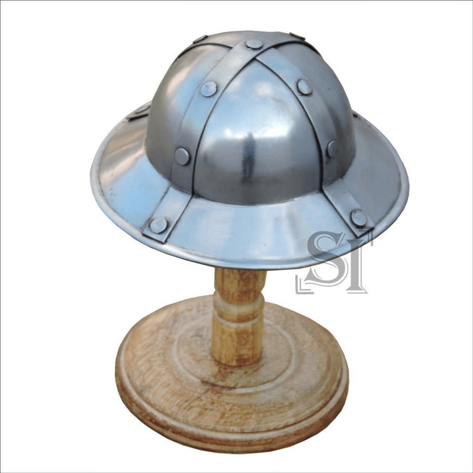 Kettle Hat XIII Century Crusader Knight Infantry Miniature Helmet W/ Wood Stand