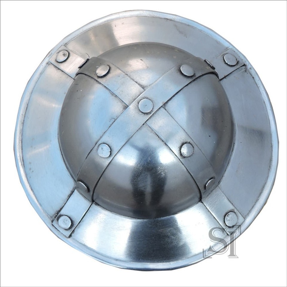 This Kettle Helmet is a stunning piece of craftsmanship, perfectly designed replica of a Medieval Kettle Hat. Fashioned from several pieces of formed metal and riveted together, this helmet was easier and cheaper to make than more complex helmets of the time. It was widely used by foot soldiers and crossbowmen (and sometimes cavalry) across Europe and during the Crusades from the 10th through 15th centuries. The war hat is one of the most common Medieval helmets for the ordinary soldier. It offered the wearer unrestricted situational awareness of the battlefield and good protection from blows and arrows coming from overhead, common threats when fighting on foot and during siege warfare.