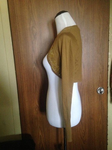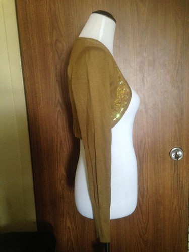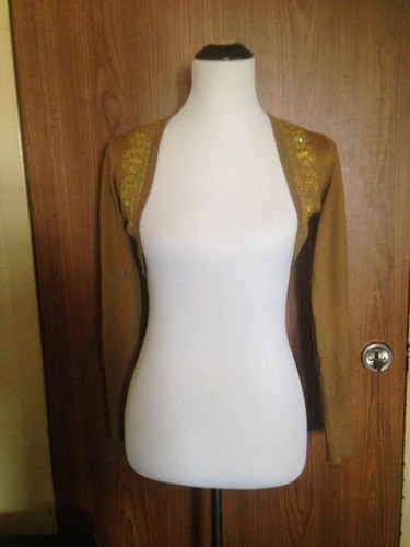 AQUA Silk Cashmere Blend Mustard Yellow Capelet Sequin Details SZ XS