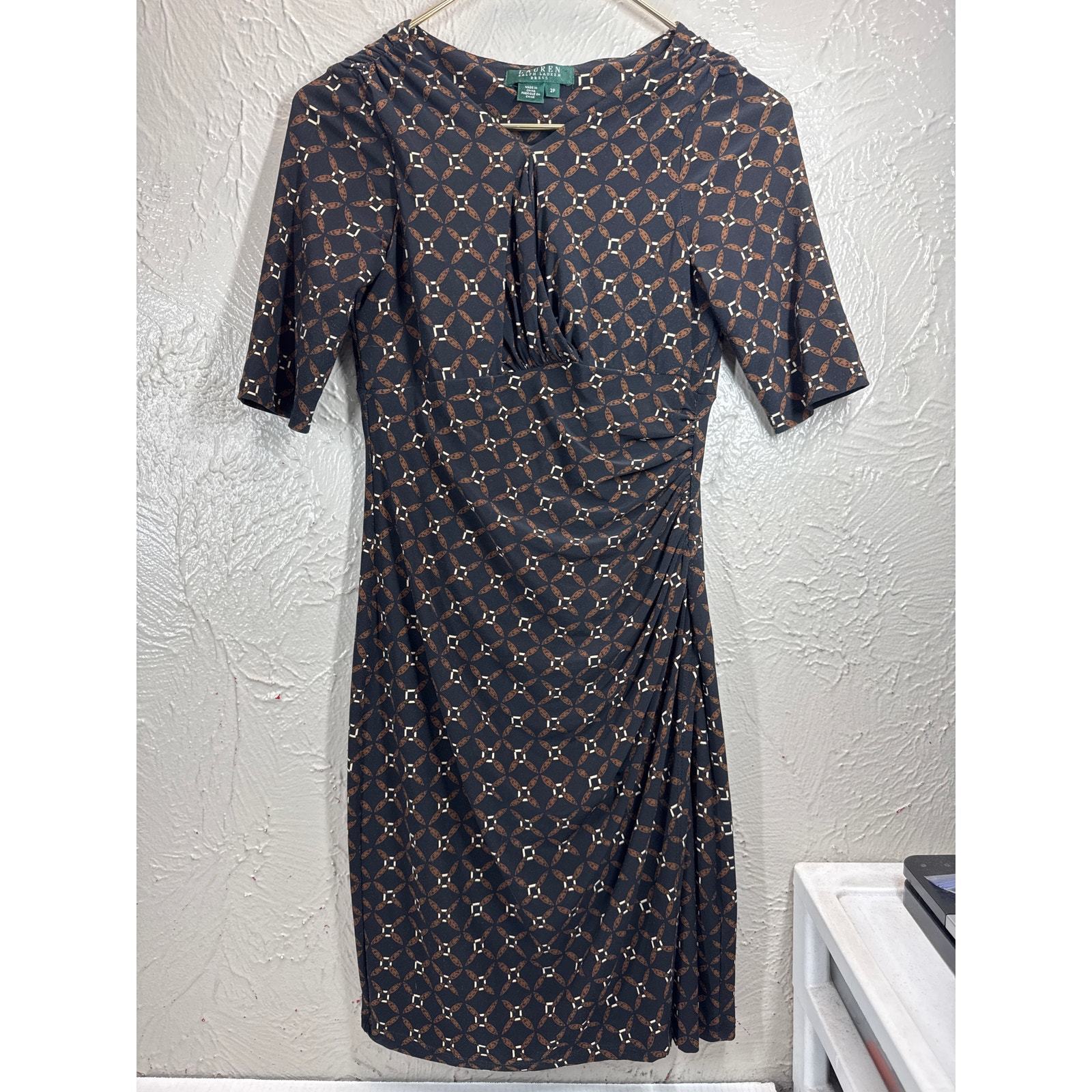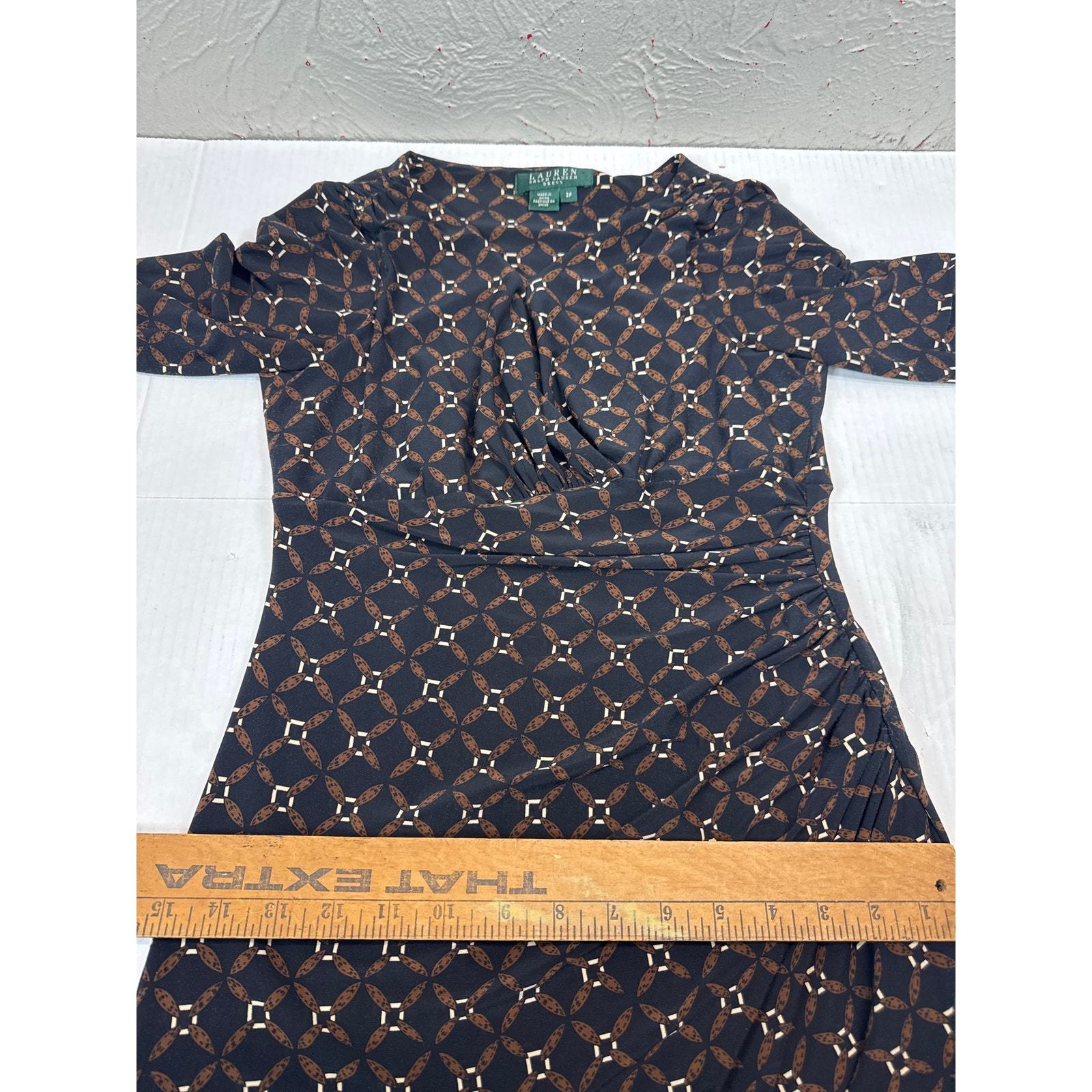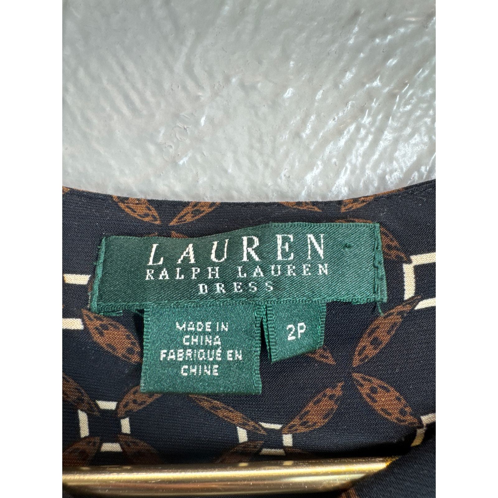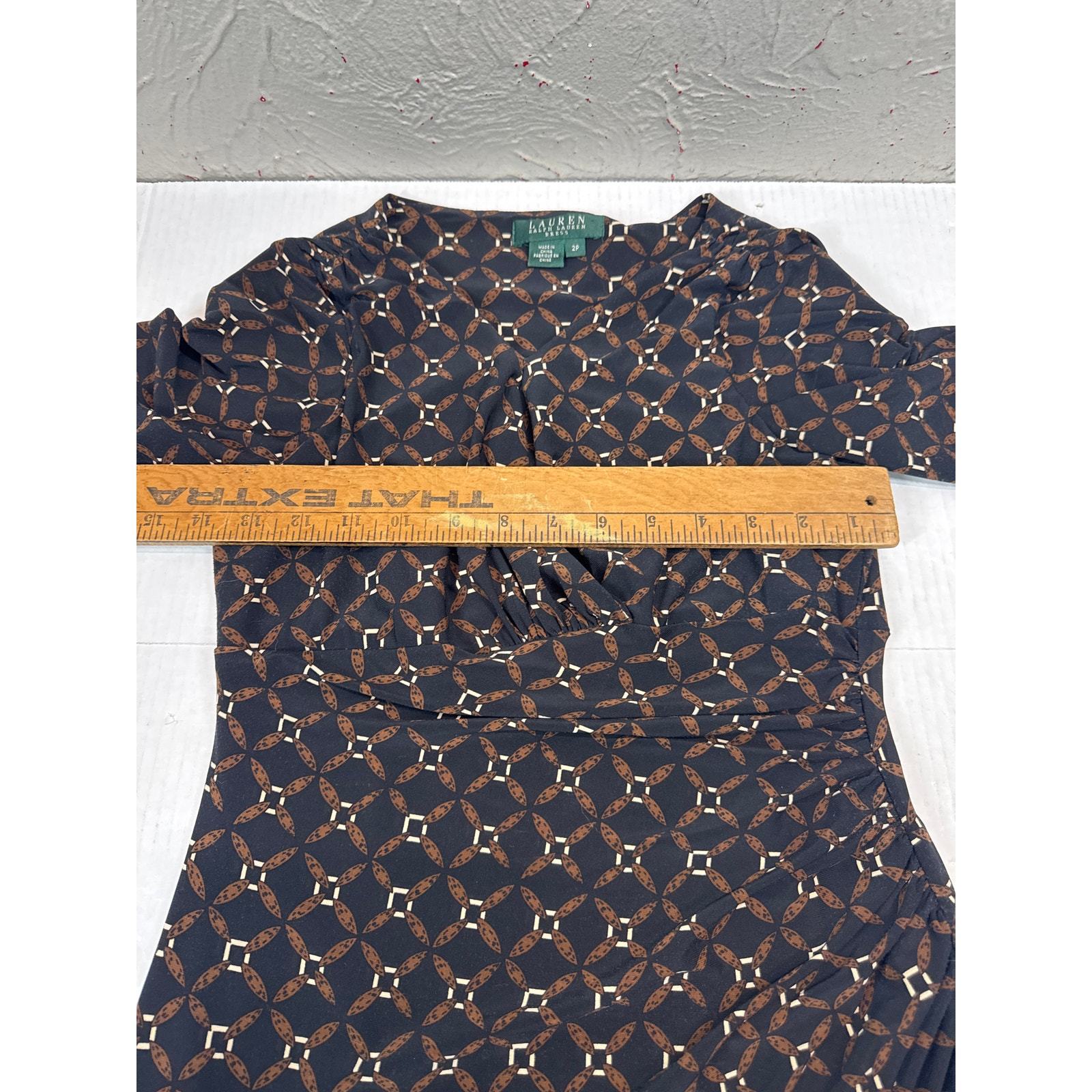 Ralph Lauren Dress Black Chain Sheath Surplice V-Neck Short Sleeve Petite 2P