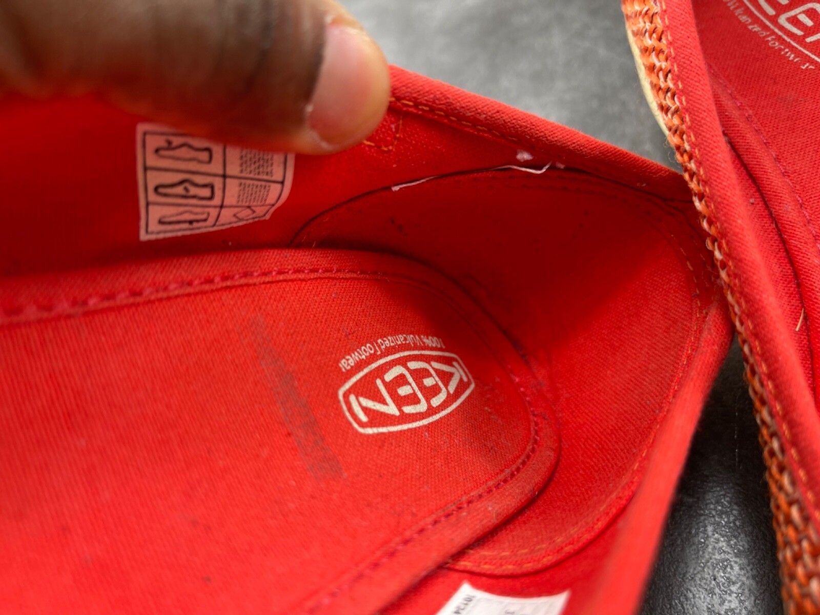 Note : Being a used item, there are signs of prior use on it like a few body abrasions, a little fading, staining, heel wear, some insole/inside body staining/wear and an area of gum on the bottom sole but overall, they are still in really great condition.