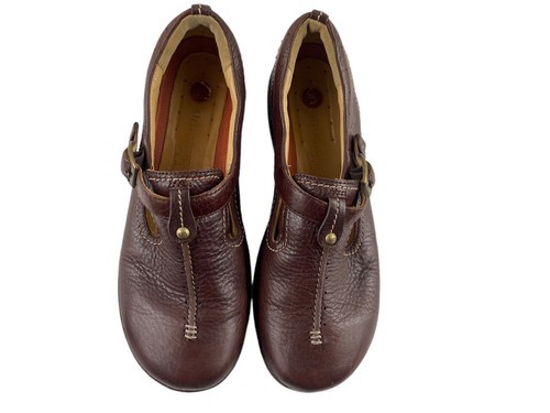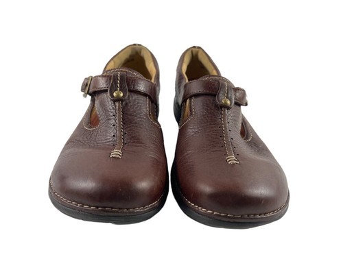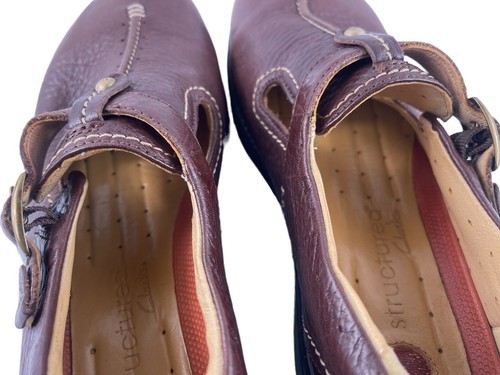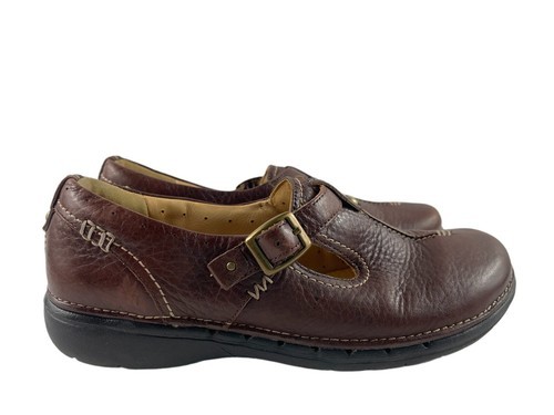 CLARKS Oxford Women 7.5M Unstructured Shoes Brown Leather Buckle Strap Comfort