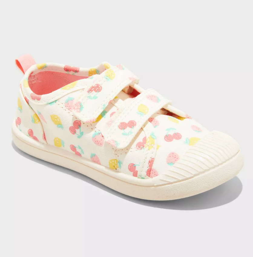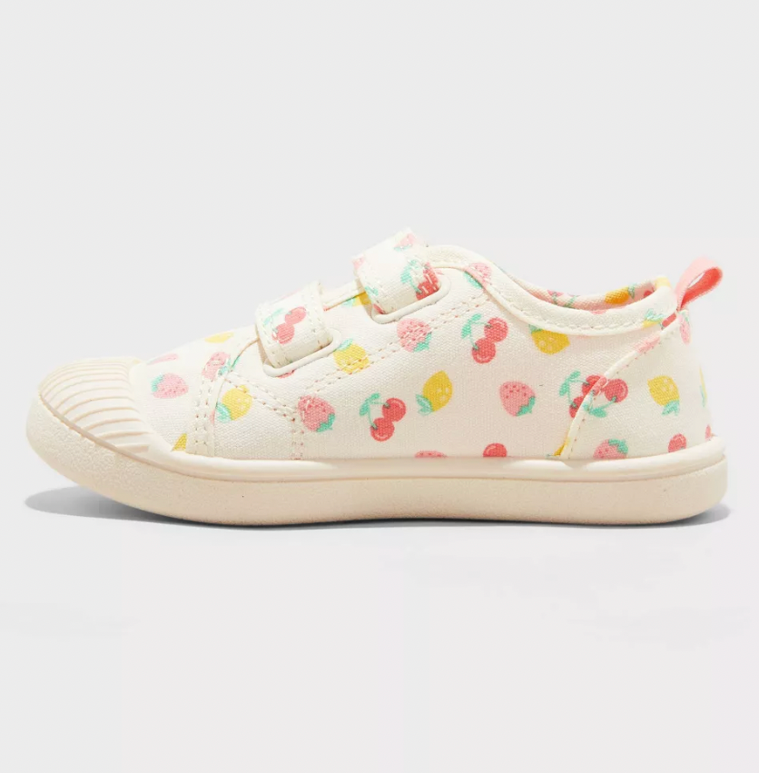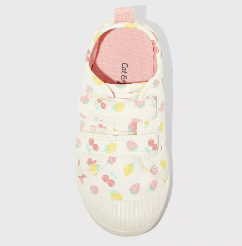 Porta un comodo comfort alle loro attivita all'aperto con queste scarpe da ginnastica Parker Apparel di Cat Jack. In mostra un tessuto bianco sporco con una stampa fruttata colorata per un aspetto fresco, queste scarpe da ginnastica a punta chiusa presentano una fodera in cotone con una tomaia traspirante per tenerli a camminare in comodita per tutto il giorno. La chiusura a gancio offre una vestibilita sicura, mentre le linguette sul retro del tallone consentono una facile usura. Inoltre, hanno un bell'aspetto con qualsiasi cosa, dai pantaloncini agli abiti ai jeans, aiutandoli a apparire al meglio in ogni momento.