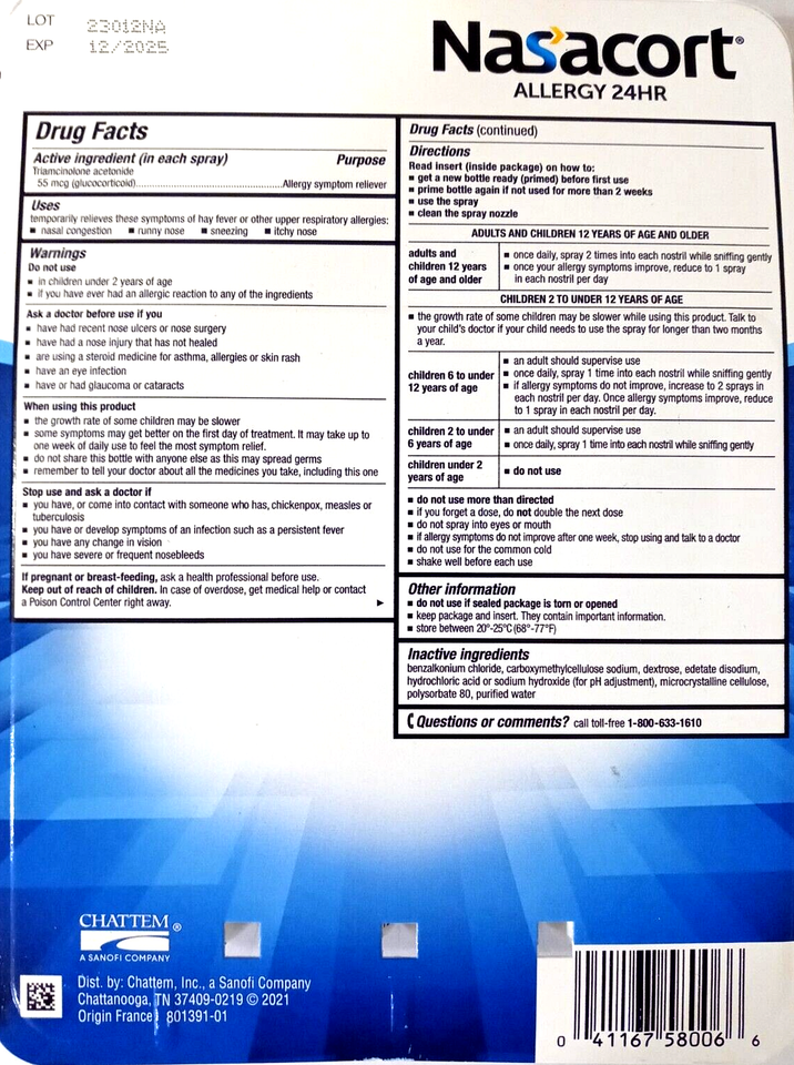 Nasacort Triamcinolone 55 mcg 24Hr Allergy Relief 480 Sprays EXP 05/2027