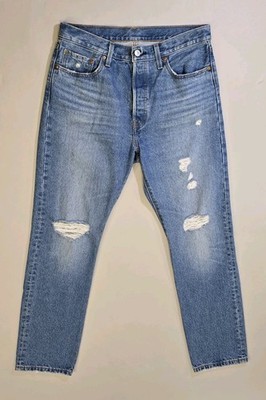 Levi's Womens 501 Jeans Size 29 (31x30) Med Wash Distressed Button Fly Denim