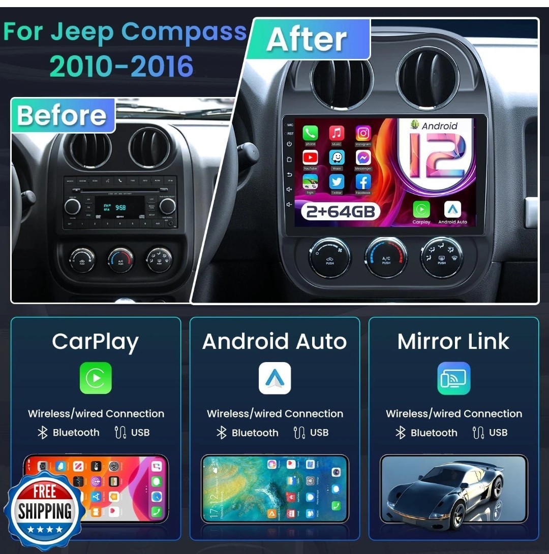 [4Core+64GB] Car Radio Stereo for Jeep Compass Patriot 2010-2016