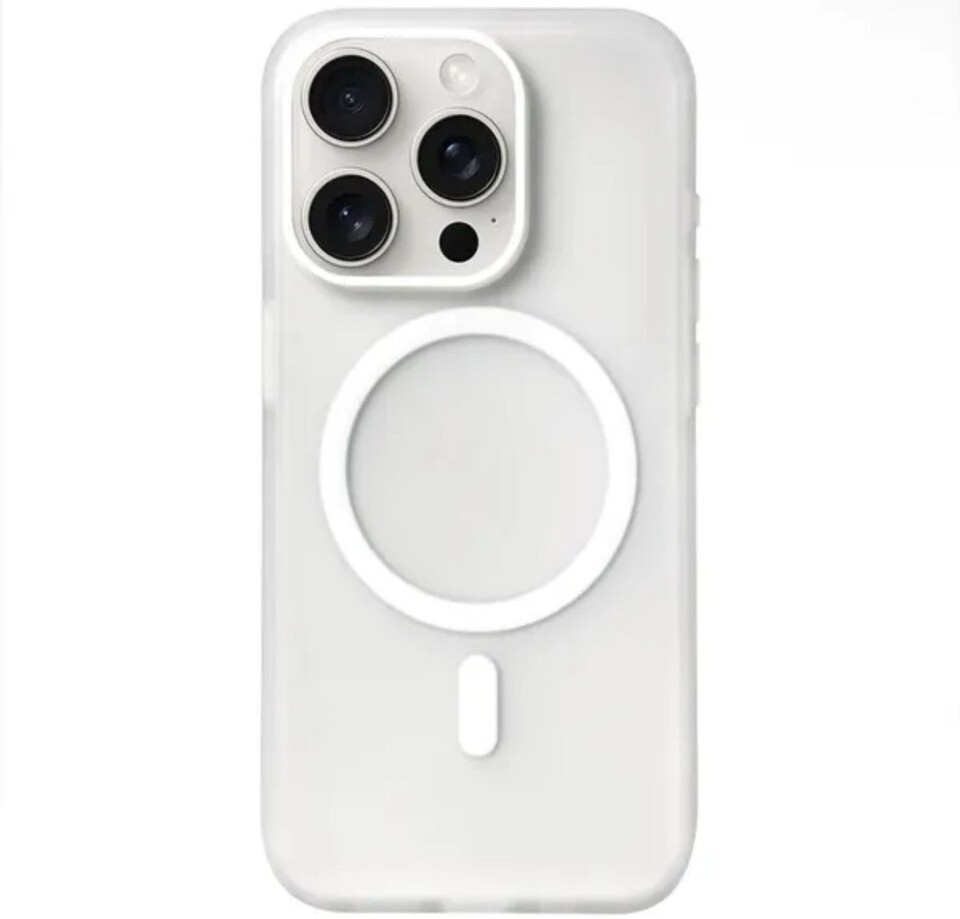 The product is a magnetic phone case designed specifically for Apple iPhone models, including the 16, 15, 14, 13, and 12 Pro Max. The case features a translucent matte finish, providing a sleek and stylish look while also offering protection for the phone. The clear color allows the original design of the iPhone to shine through, while the magnetic closure ensures a secure fit. Perfect for those looking to add a touch of elegance to their iPhone while keeping it safe from everyday wear and tear.
